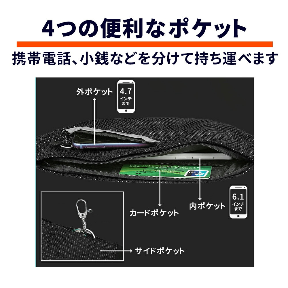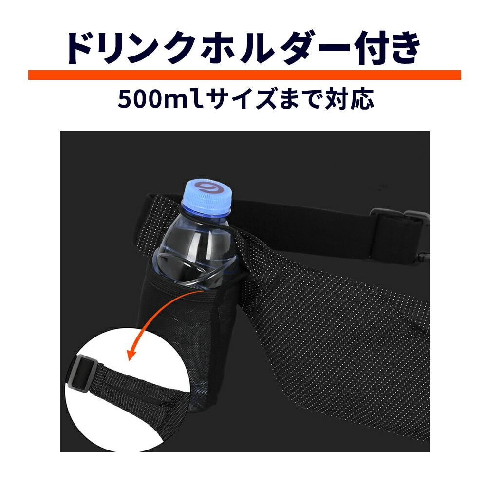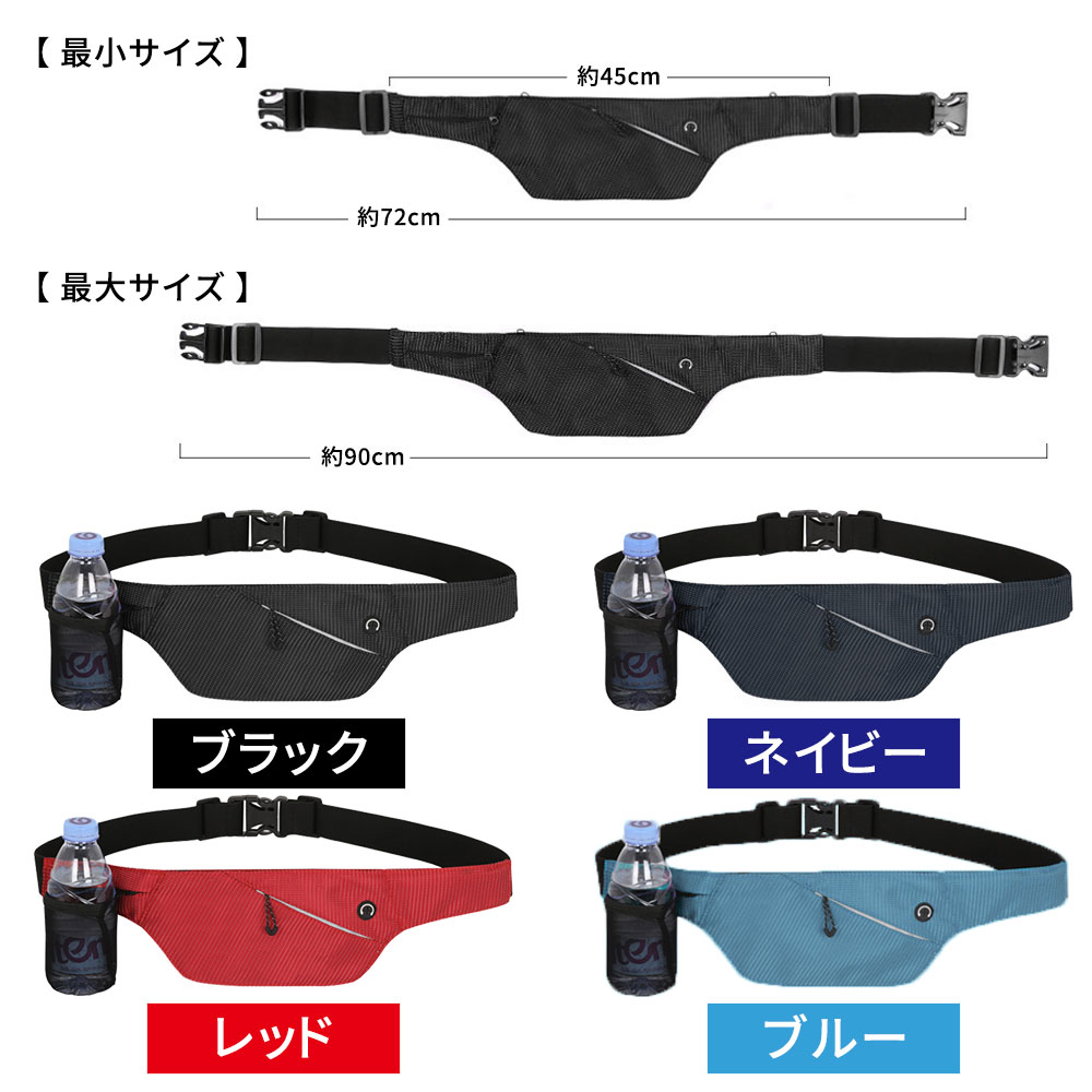 ランニング/ランニングポーチ/ポーチ/防水/薄型/軽量/シンプル/ウォーキング/ドリンクホルダー/ブラック/ネイビー/レッド/カードポケット/サイドポケット/クレジットカード/スマホ/ドリンクホルダー/ホルダー/ウエスト/ウエストポーチ