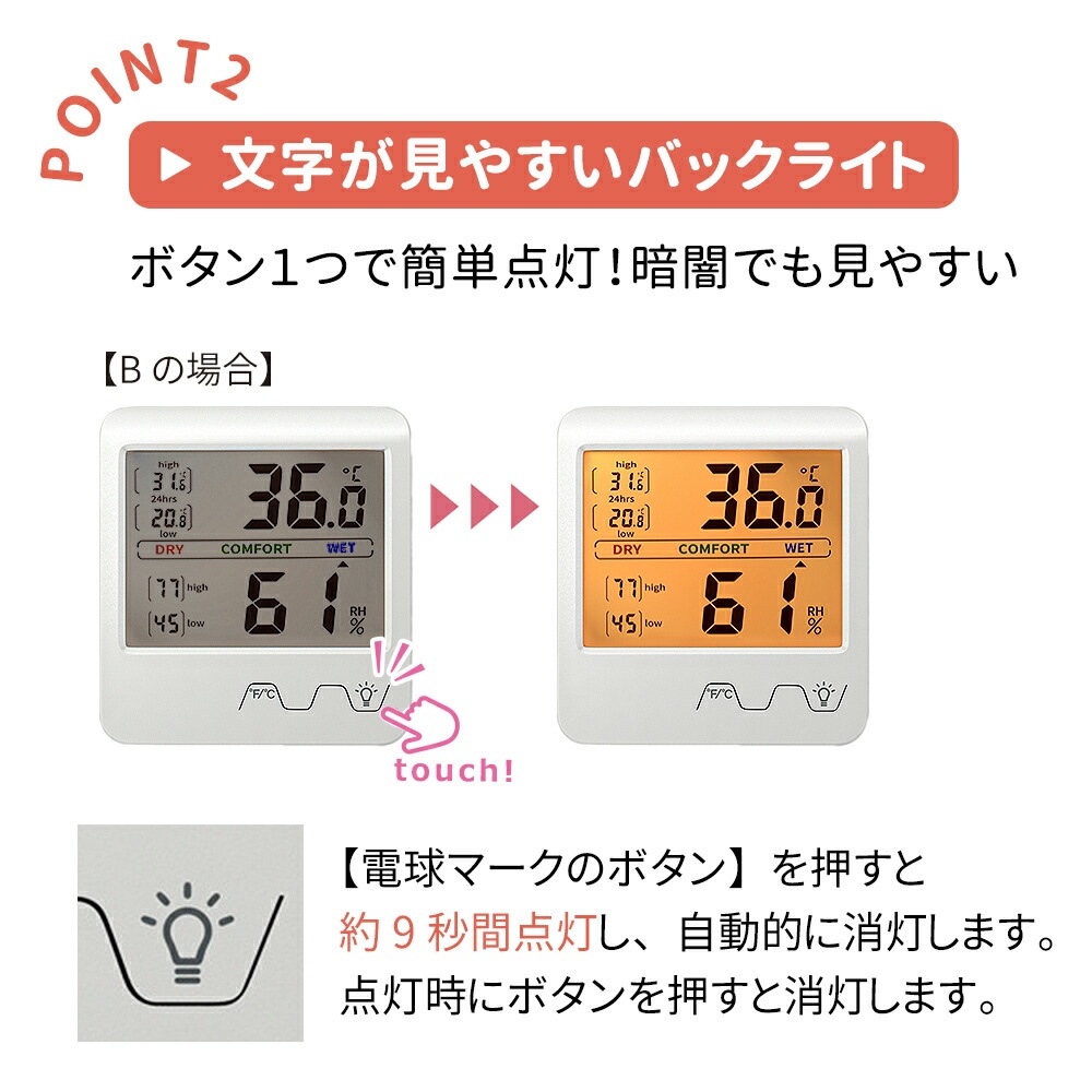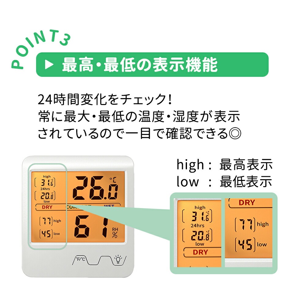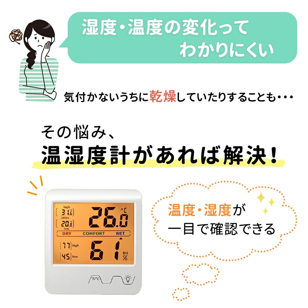 湿度/温度/計測/湿気/予防/風邪/風邪予防/デジタル/デジタル表記/チェック/健康管理/空気管理/カビ対策/カビ/マーク/表記/デジタル温度計/デジタル湿度計/わかりやすい/分かりやすい/マグネット付き/分かりやすい/マグネット付き/乾燥/快適/多湿/バックライト/温湿度計/育苗/野菜/ペット/温度管理/小動物/爬虫類/飼育/犬/イヌ/いぬ/猫/ネコ/ねこ/室内/ウォークインクローゼット/着物/
