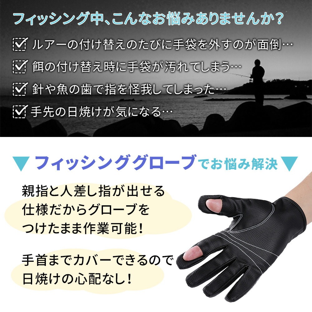 フィッシンググローブ/釣り用グローブ/フィッシング手袋/釣り/アウトドアグローブ/男女兼用/左右セット/サイクリング/キャンプ/作業用/指だし/親指/人差し指/2本出し/2フィンガーレスグローブ/指出し/滑り止め素材/グリップ/ブラック/ブルー/メンズ/レディース/自転車/手袋/防風/グローブ/魚釣り/夜釣り/スマホ対応/バイクグローブ/海釣り/川釣り/指ぬき