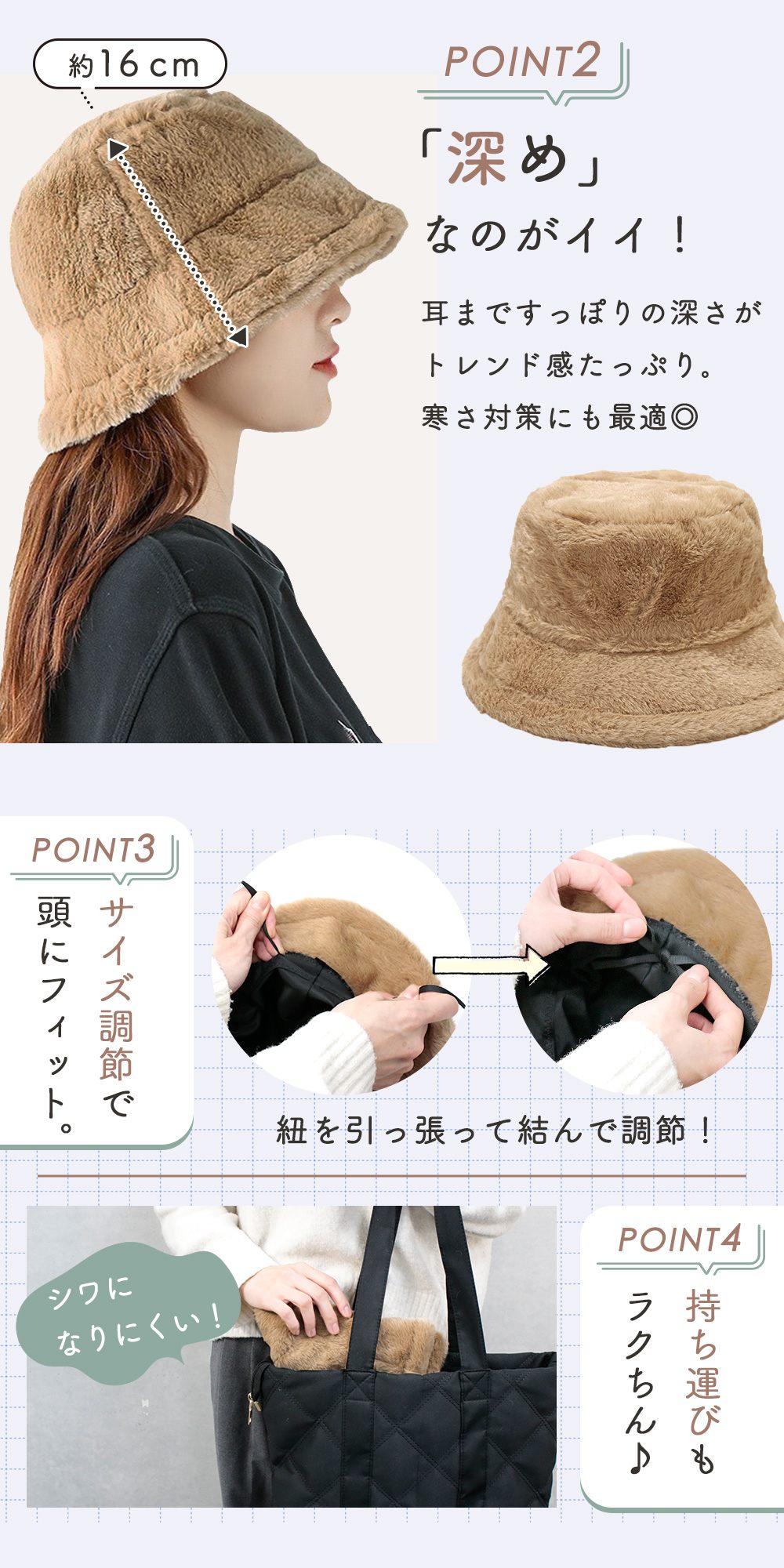 バケットハット ファー 深め ハット 帽子 レディース 冬 女性 防寒 かわいい エコファー 大きいサイズ 秋冬 コーデ 大きめ サイズ調整 冬コーデ 30代 40代 50代