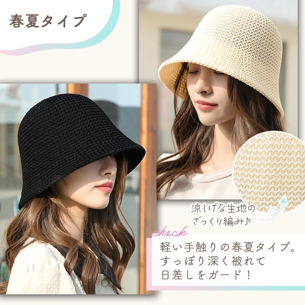 ニット バケットハット 帽子 レディース 春夏 秋冬 オールシーズン おしゃれ かわいい つば広 大きいサイズ ゆったり カジュアル 無地 日差し対策 日焼け予防