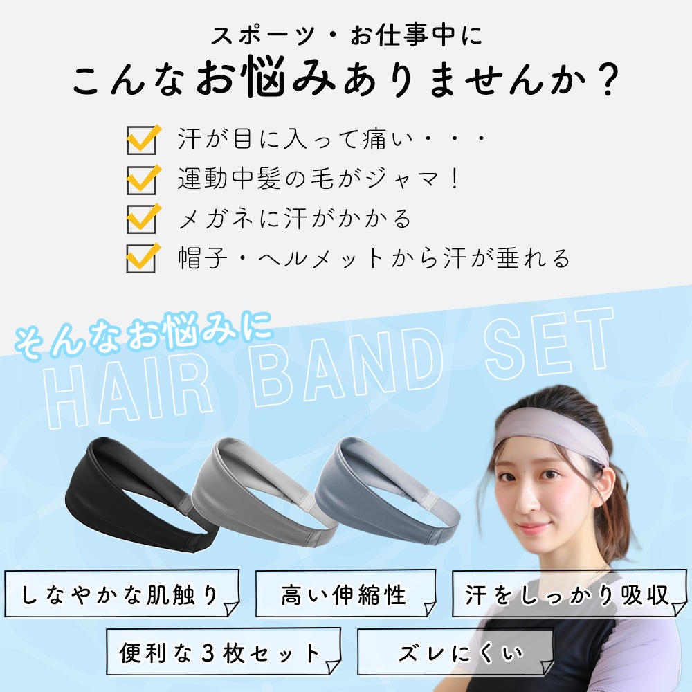 ヘアバンド/3本セット/ヘアターバン/レディース/メンズ/ユニセックス//汗止め/洗顔/カチューシャ/ヘアーバンド/シンプル/吸水力/伸縮性/洗い替え/ターバン/ヘッドバンド/ヘアアクセ/男女兼用/ヘアアクセサリー/お風呂上り/化粧/髪止め/髪どめ//スポーツ/トレーニング/ランニング/ウォーキング/大人/子ども/ルームウエア/ランニング/プレゼント/贈り物/伸びる/バンダナ/掃除/ヨガ/テニス/登山/キャンプ/アウトドア/TN-HBTB/