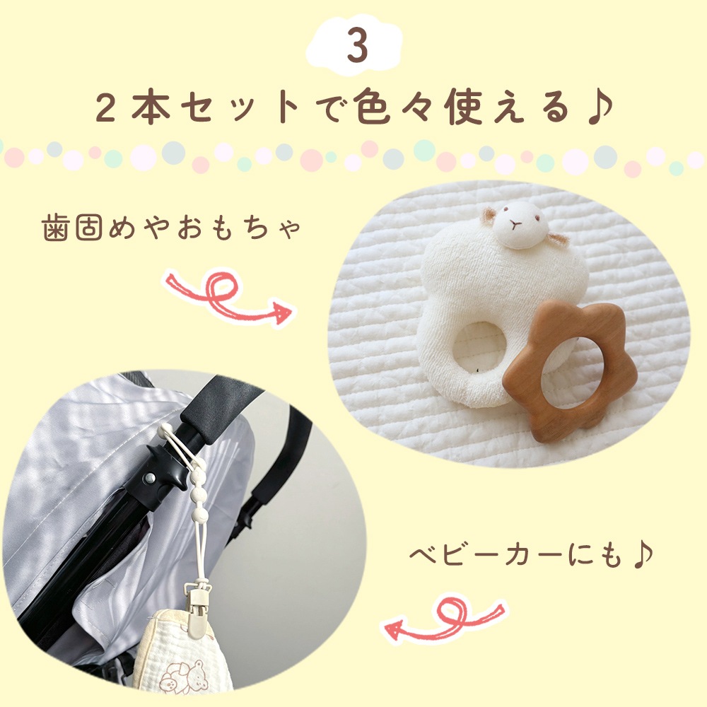 シリコン トイストラップ 2本セット おしゃぶり クリップ 紛失防止 洗える 男の子 女の子 ベビーカー 赤ちゃん 子供 おもちゃホルダー おしゃぶりホルダー
