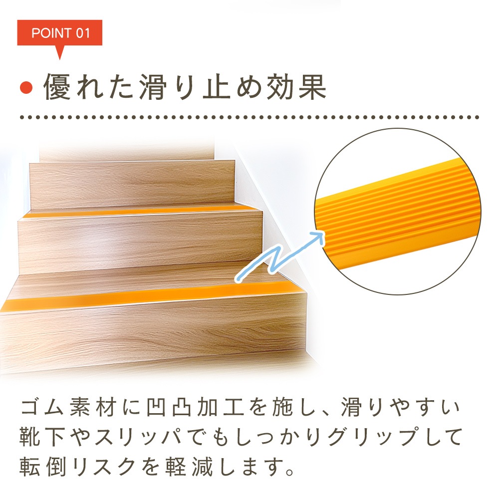 階段すべり止めシート 5m スリップ 転倒防止 幅3cm 取り付け簡単 カット サイズ調整 テープ式 介護 ペット 犬 猫 子供 子ども 高齢者 施設 ゴム製 公共施設