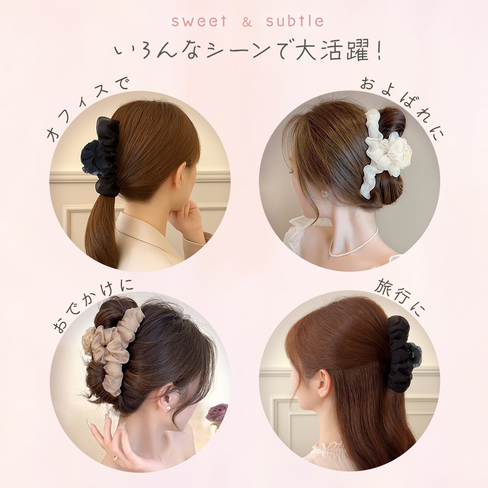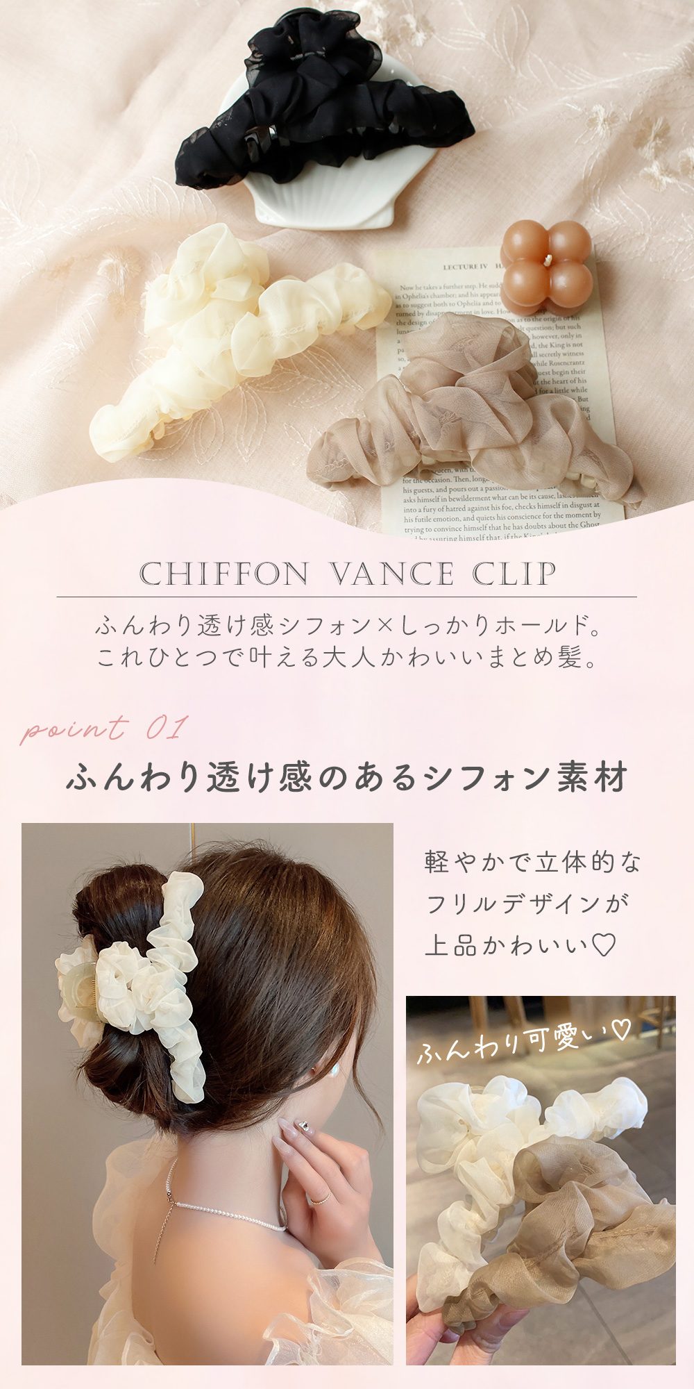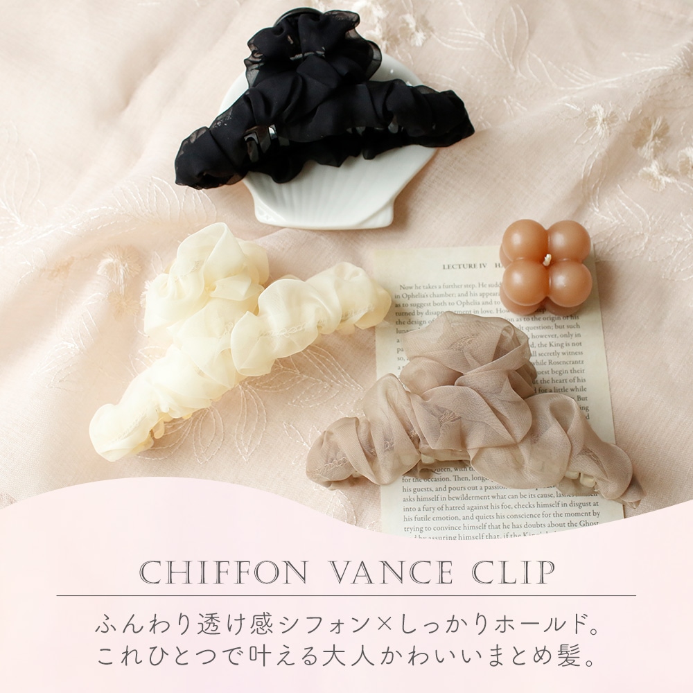 ふんわりとしたシフォン素材を贅沢に使用した大きめバンスクリップ。