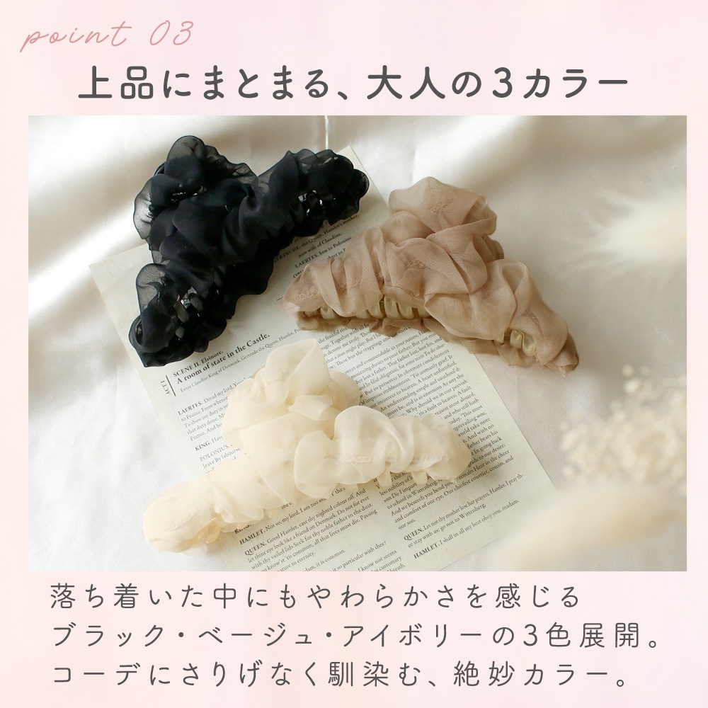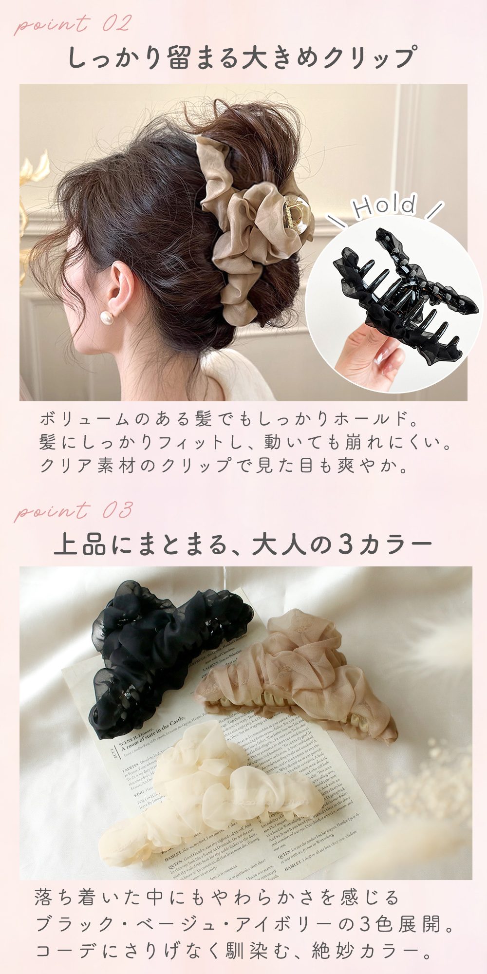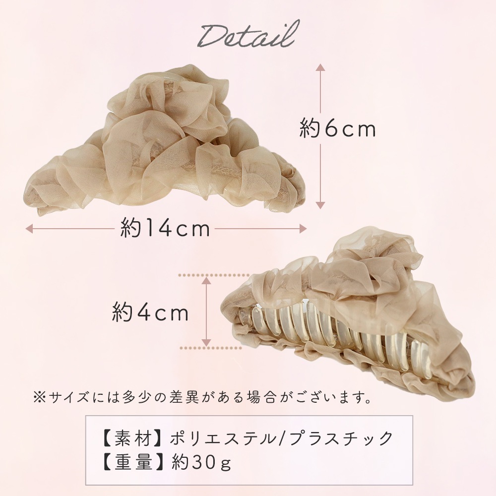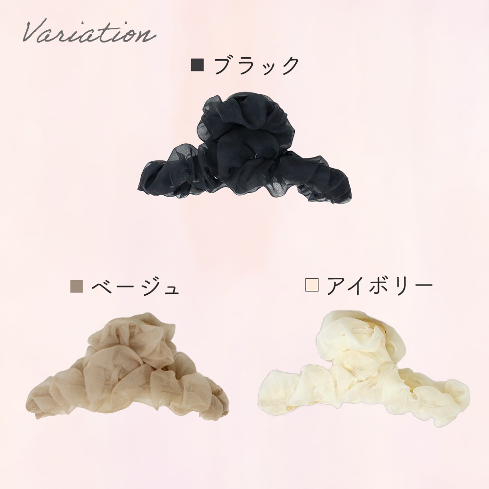 シフォン バンスクリップ ヘアクリップ 大きめ フリル ノーマル シンプル かわいい ヘアアクセサリー オーガンジー 立体 ギャザー 毛量 多い 多毛 まとめ髪