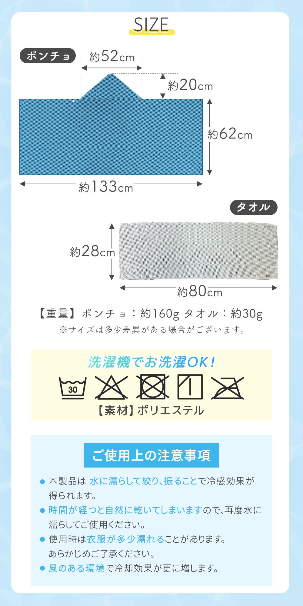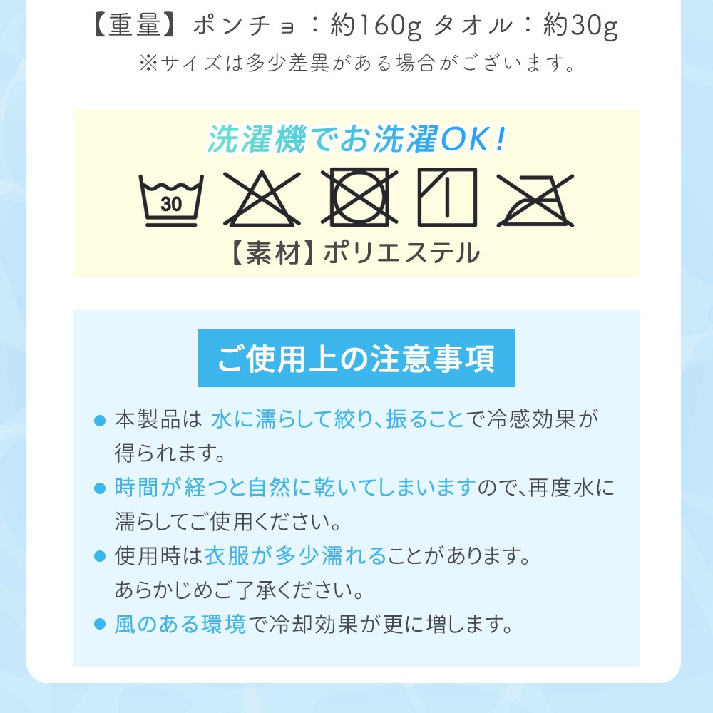 冷感 ポンチョ 冷感タオルセット UVカット 羽織る 冷感 タオル付き ポリエステル 大判 大きめ 軽量 コンパクト 生地 冷感ポンチョ 冷感タオル クール