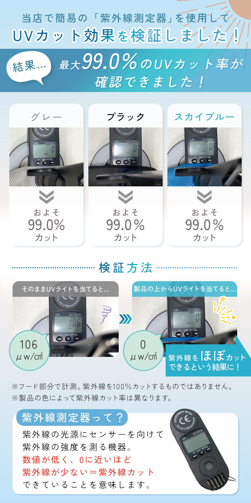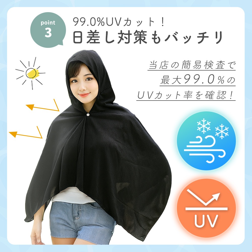UVカット機能付きで紫外線をしっかり遮断し、日焼け対策にもぴったりです。