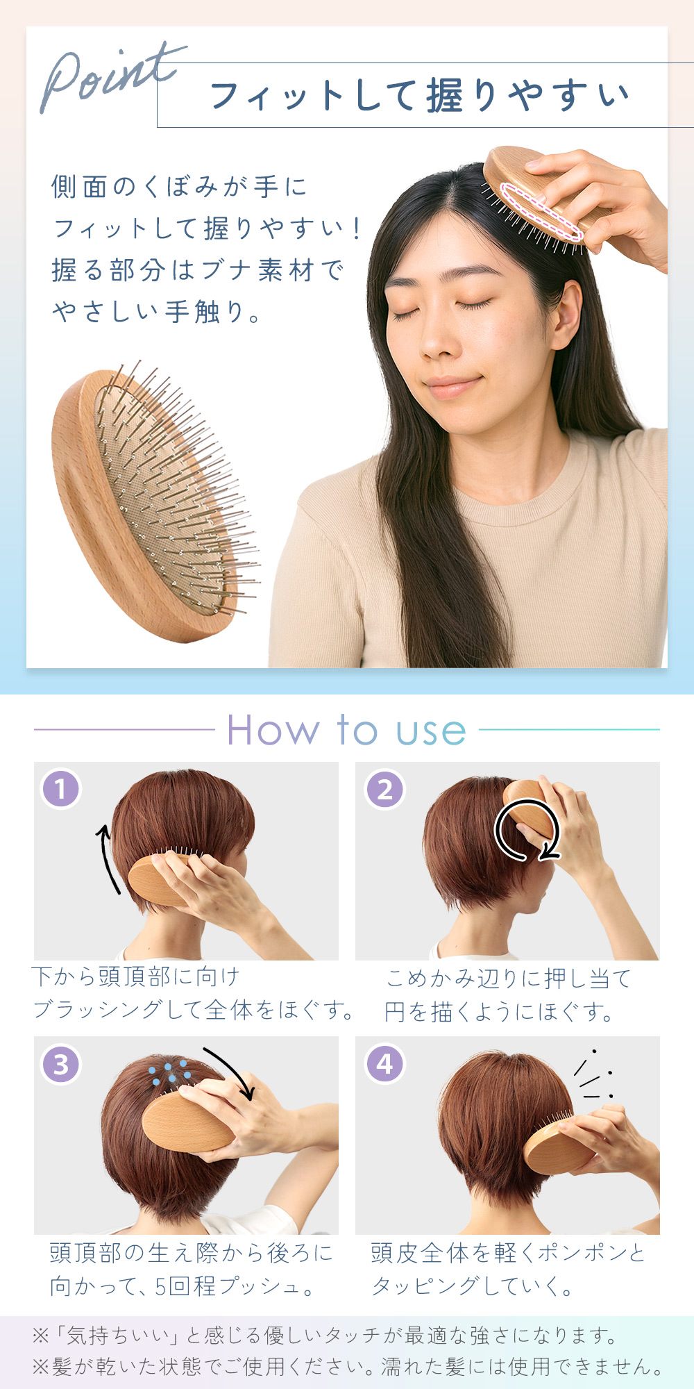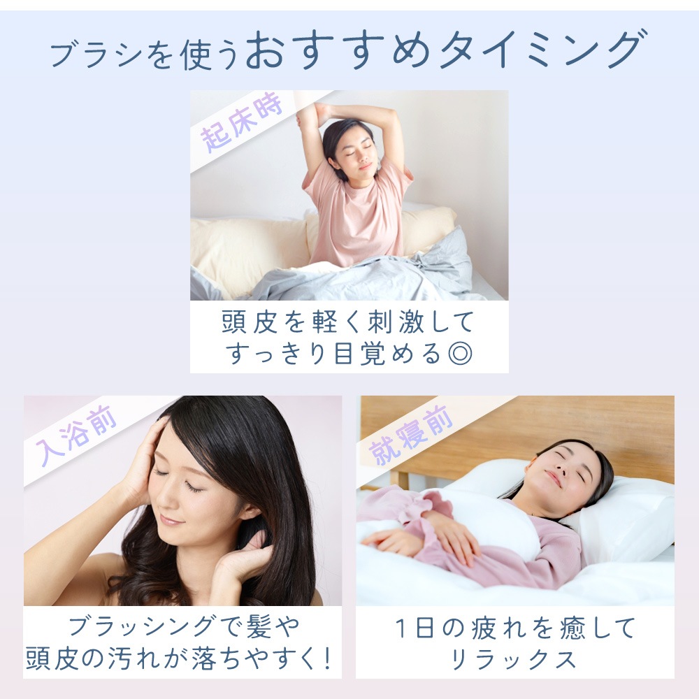 スカルプブラシとして使え、シャンプー前後の頭皮ケアにおすすめ。