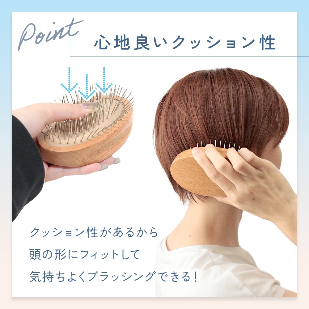 クッション性のある土台とハードでかためのピンが頭皮に心地よくフィット。