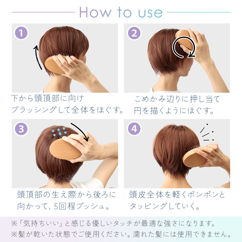 毎日のブラッシングで頭皮をほぐし、手軽に使えるヘアケアブラシです。