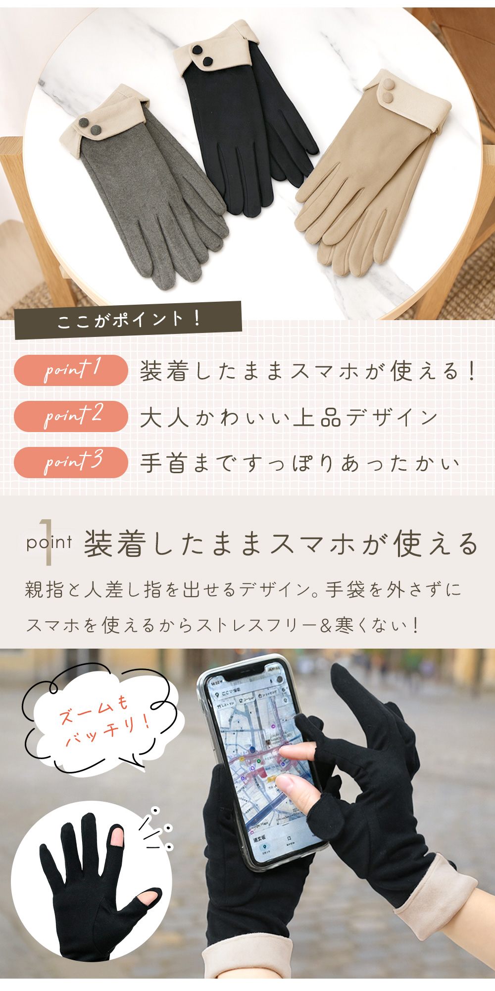 指穴つき手袋 クラシック 指穴付き 手袋 スマホが使える手袋 レディース かわいい スマホ対応 暖かい 冬 秋冬 薄手 スマート あったか スマホ操作 防寒手袋