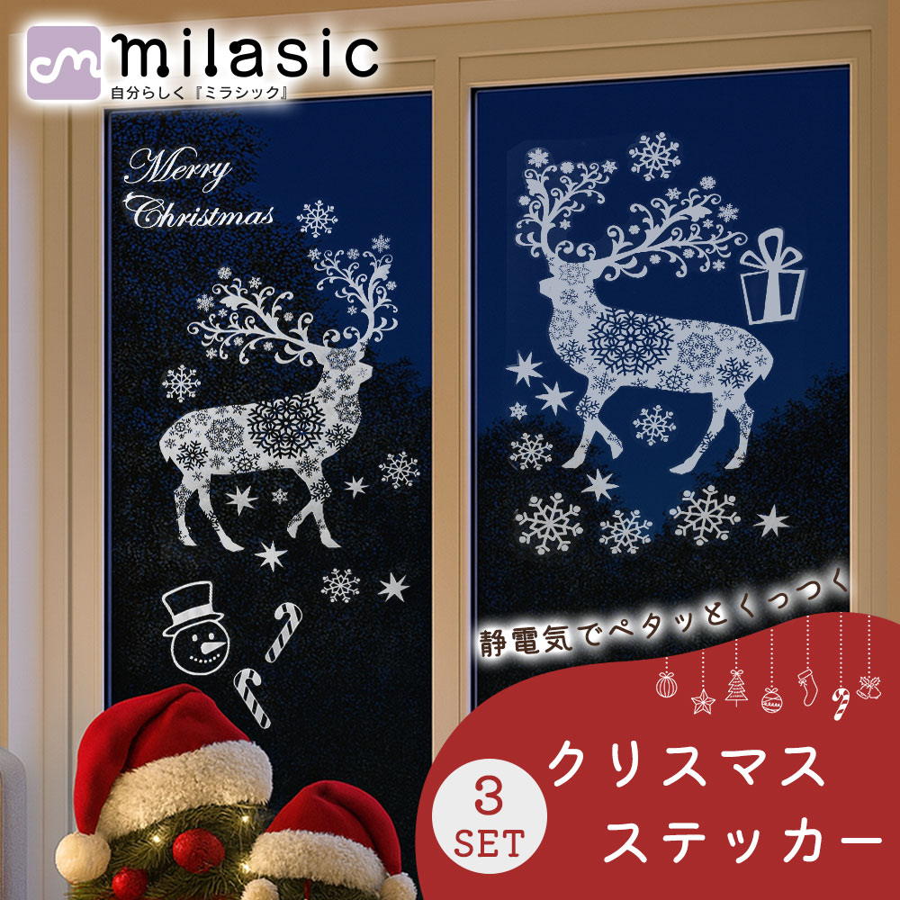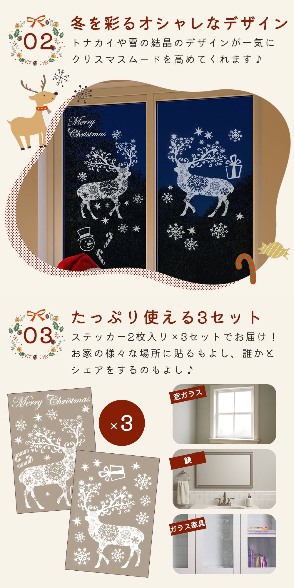 クリスマスステッカー 3セット クリスマス 飾り ステッカー ガラス かざり シンプル 窓 入口 飲食店 冬 雪 貼って 剥がせる ウォールステッカー 雪の結晶