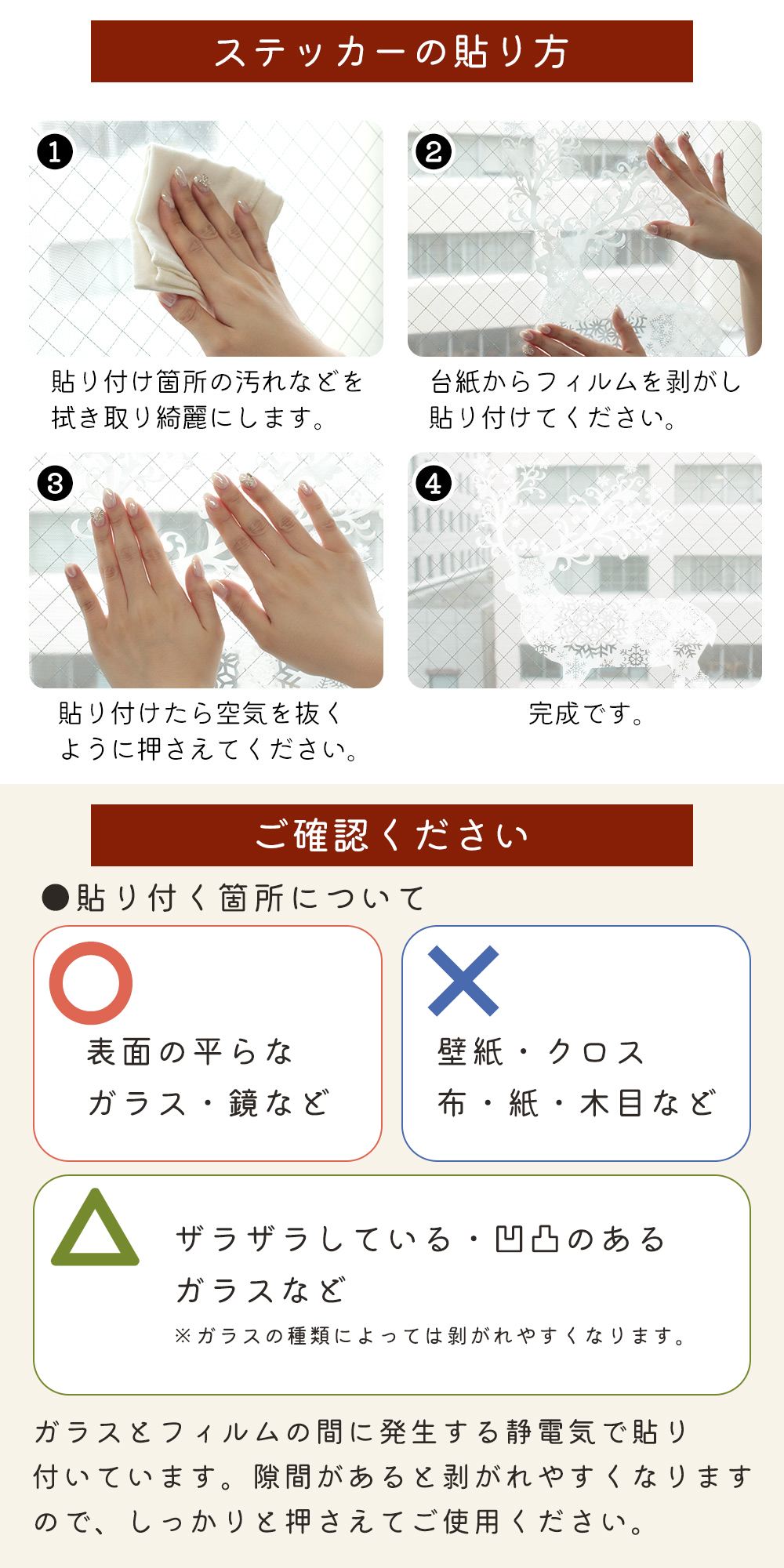 はがせるシール仕様で貼り直しOK、ガラス・鏡・壁紙など平滑面に簡単施工。