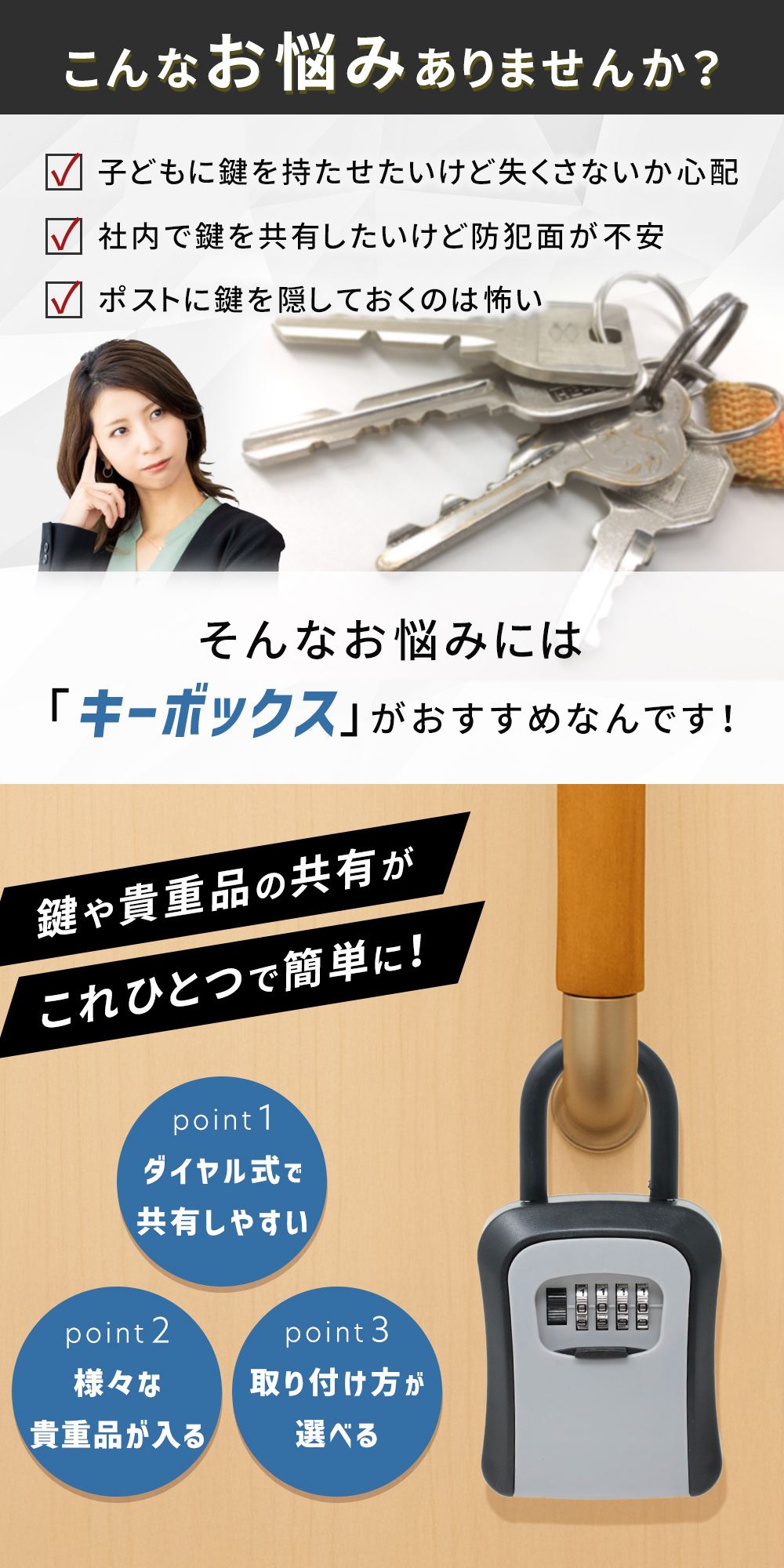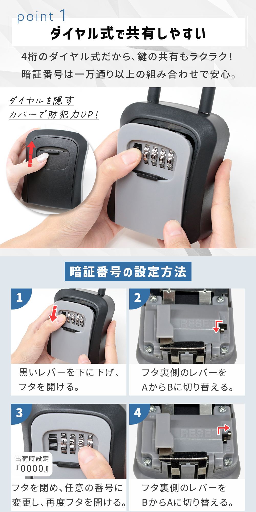 誰でも簡単に使えるダイヤル式のキーボックス。