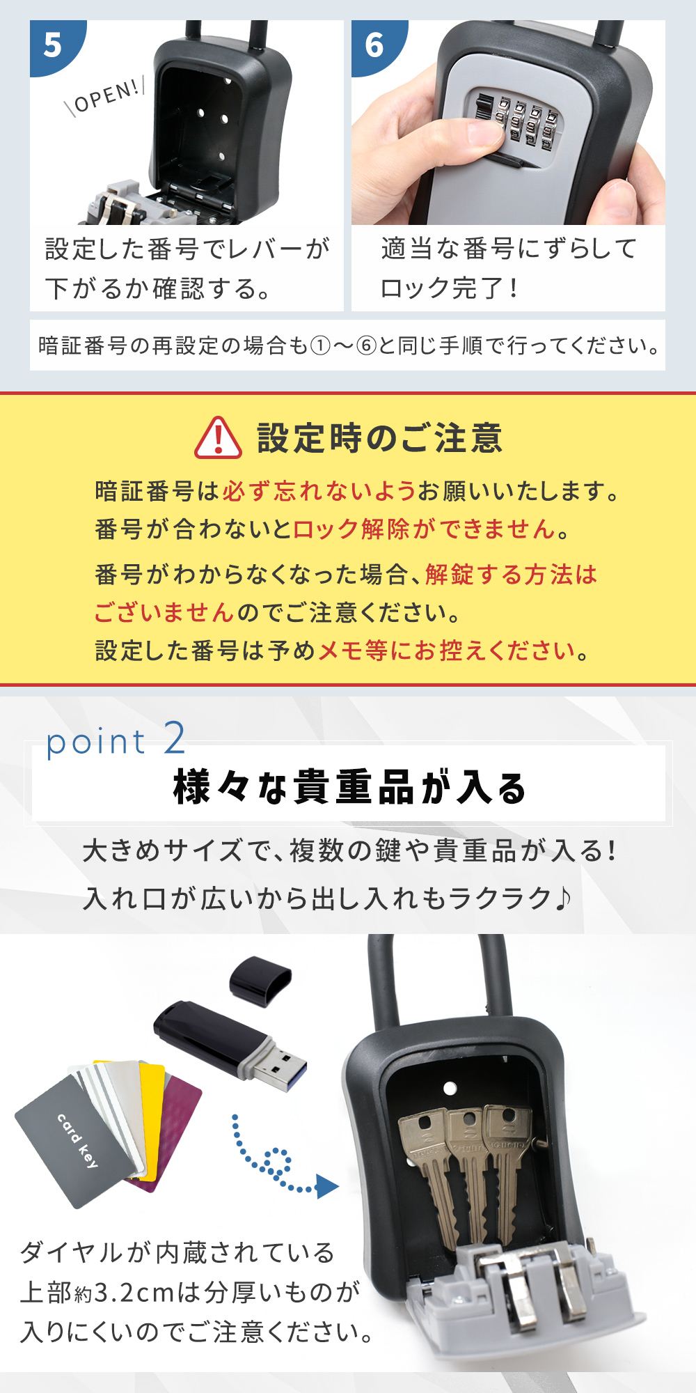 スペアキーを入れておけば、家族やスタッフが必要なときに取り出せる便利な仕組み。