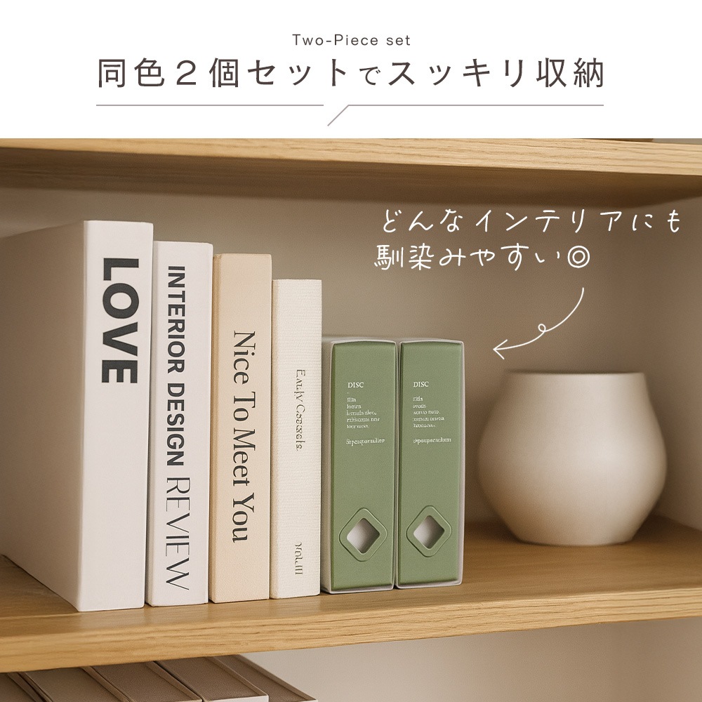 DVD収納ケース 2個セット ブック型 ファイルボックス 24枚収納 両面ポケット 不織布 防塵 省スペース スタッキング 引っ掛け穴 インデックス 本棚 CD DVD BD