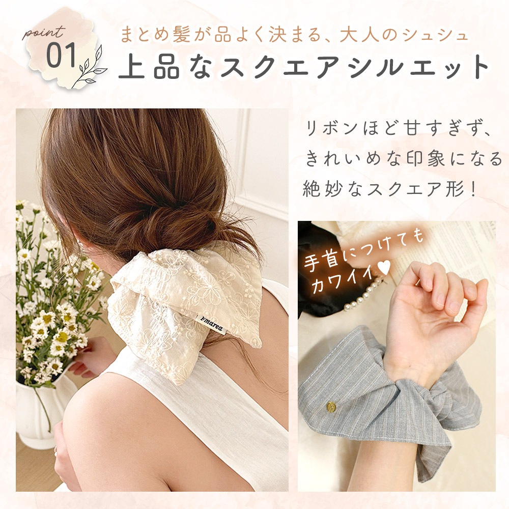 スクエアシュシュ ヘアゴム レディース まとめ髪 上品 高見え おしゃれ こなれ感 時短 ヘアアレンジ ヘアアクセ 髪留め 大きめ 2WAY オフィス 通勤 デート
