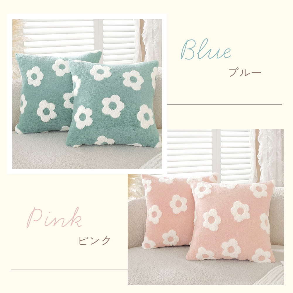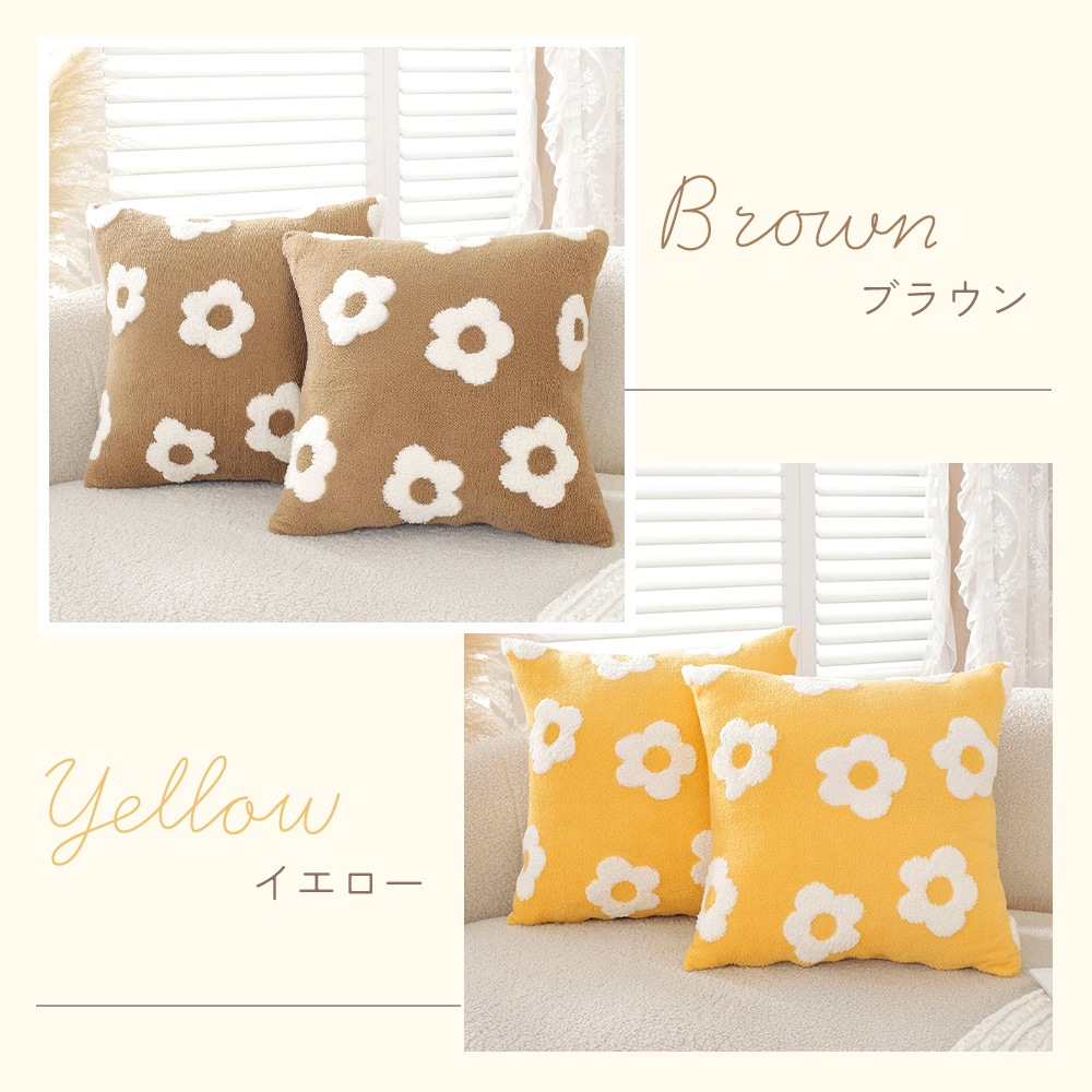 クッションカバー ホワイトデイジー 2枚セット 洗える もこもこ ボア デイジー柄 45×45cm 冬用 北欧風 韓国風 リビング ソファ ベッド かわいい おしゃれ