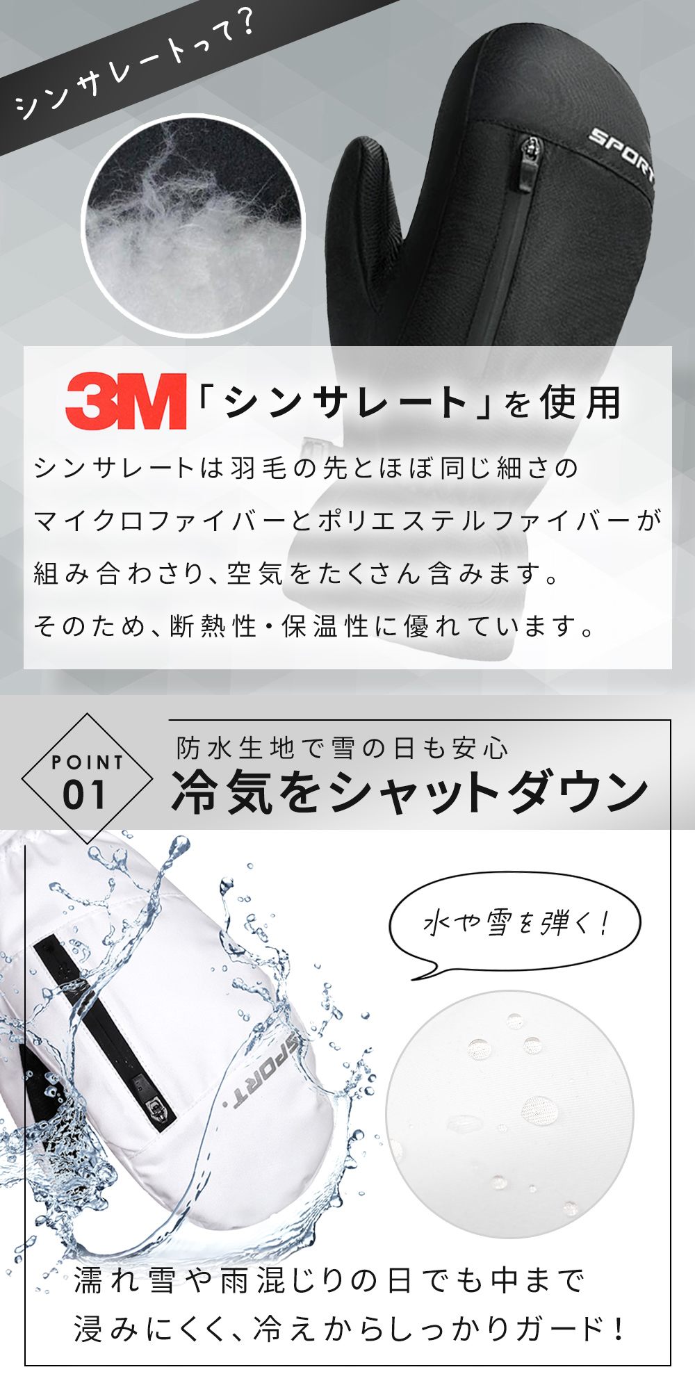 真冬のゲレンデや雪遊び、朝晩の厳しい真冬の冷え込みにも心強い防寒グローブです。
