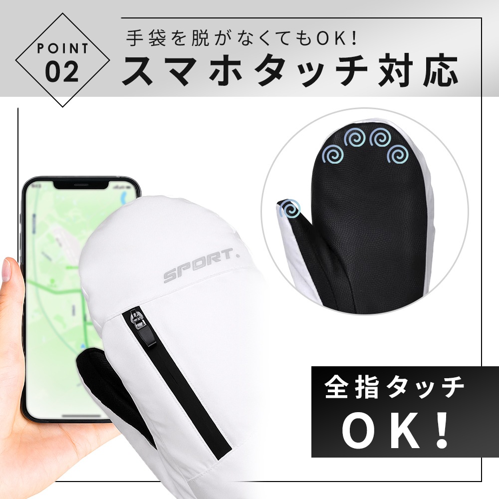 親指から指先まで、全指スマホタッチ対応仕様。