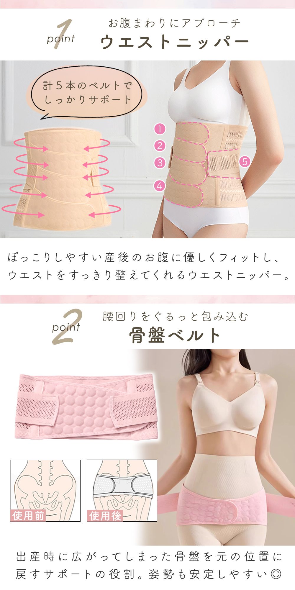 ・産後ケアにうれしい ウエストニッパー+骨盤ベルト2点セット