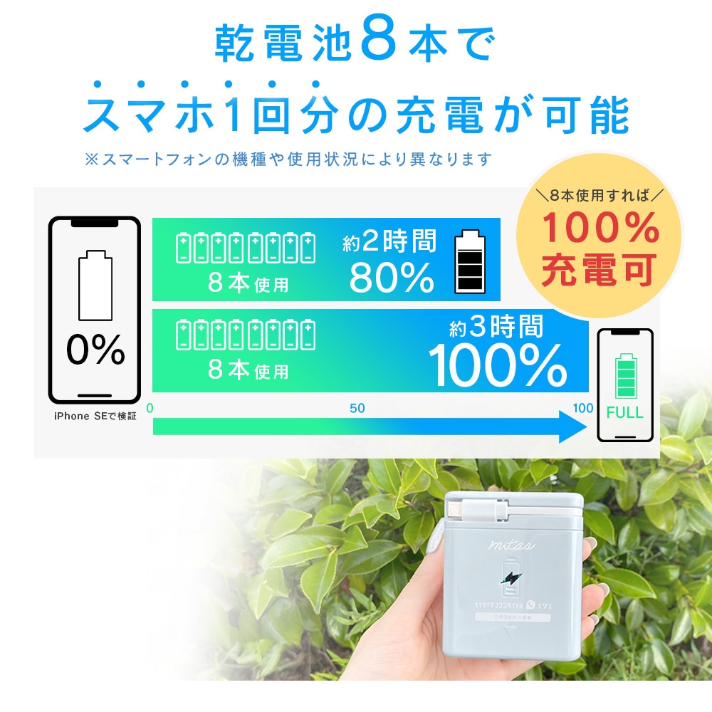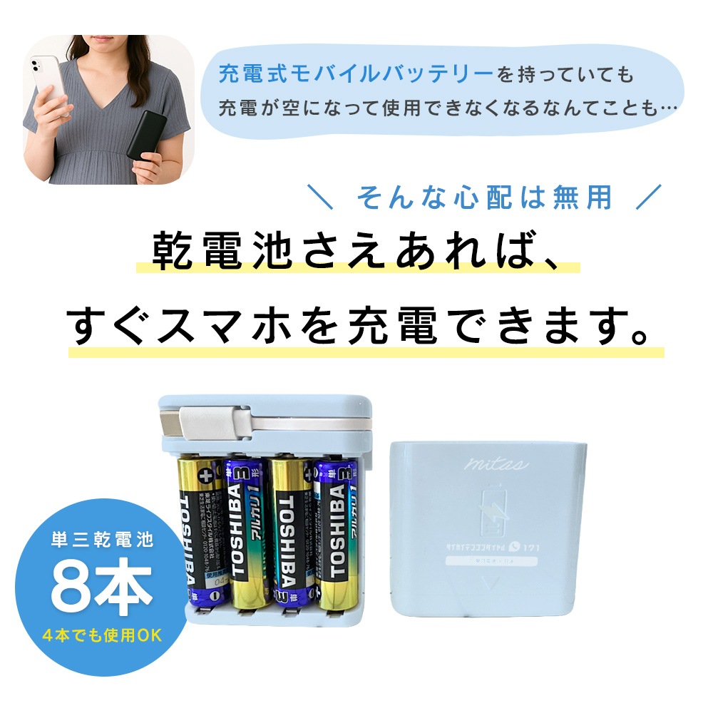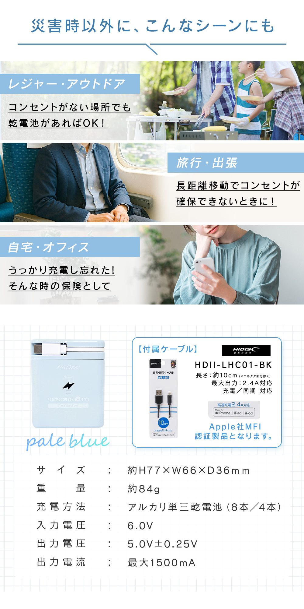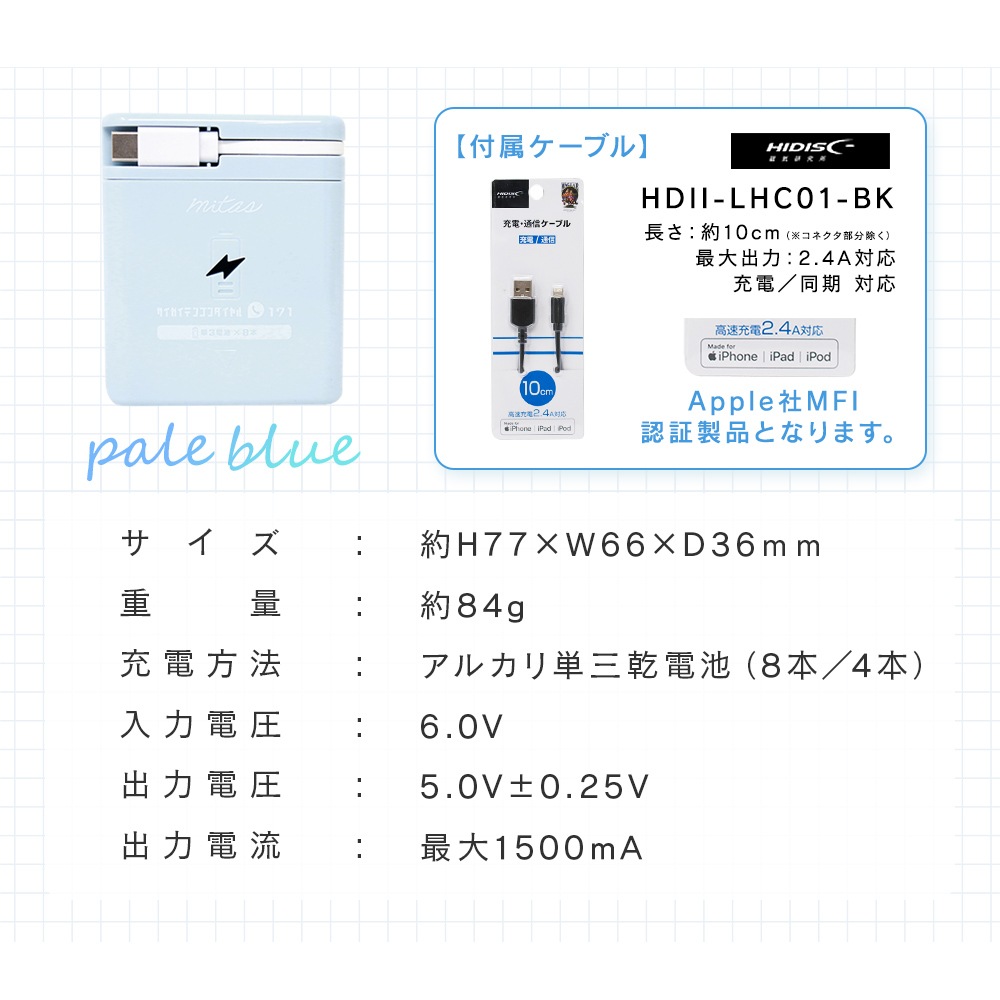 【mitas公式】 ペールブルー+Lightningケーブル+単三10本パック