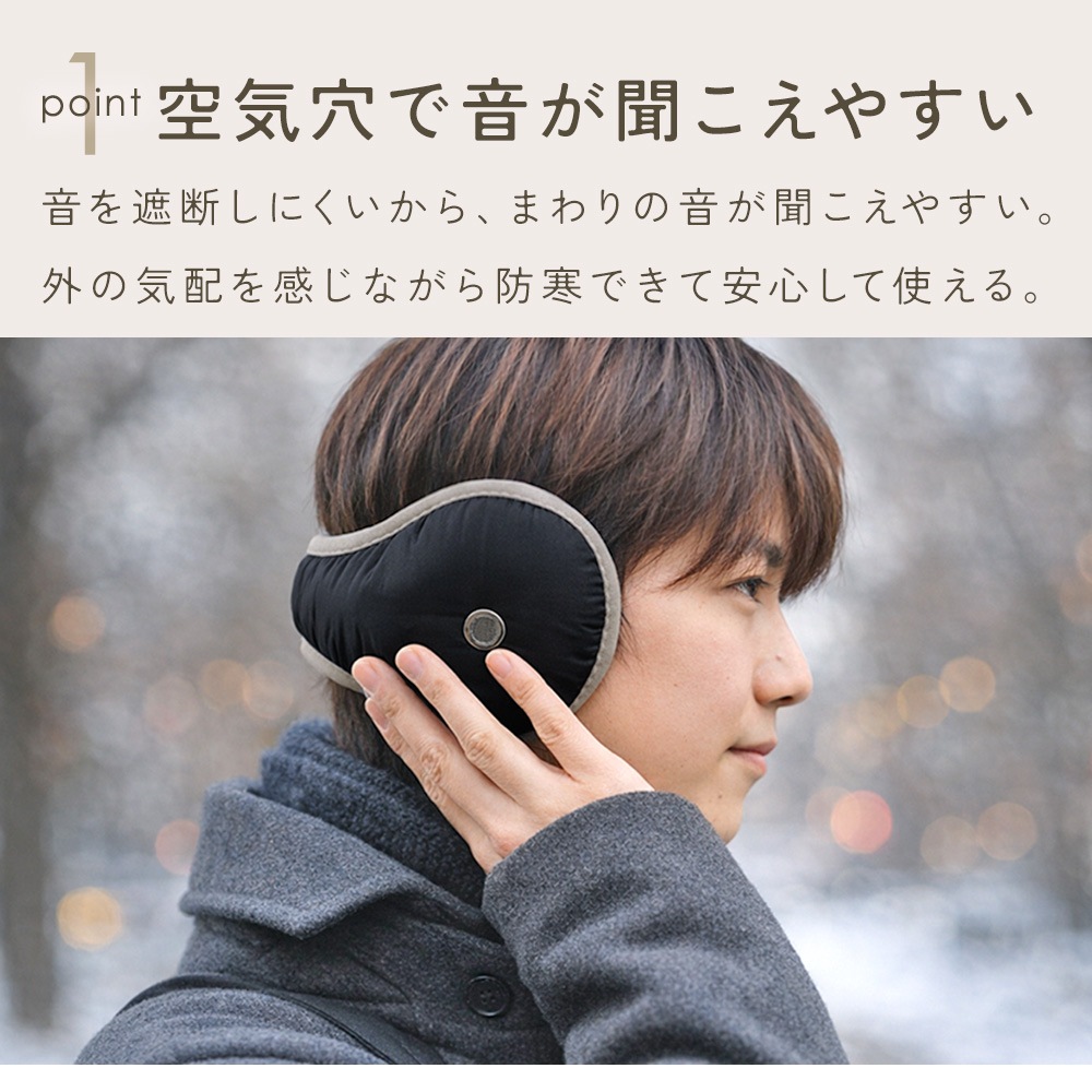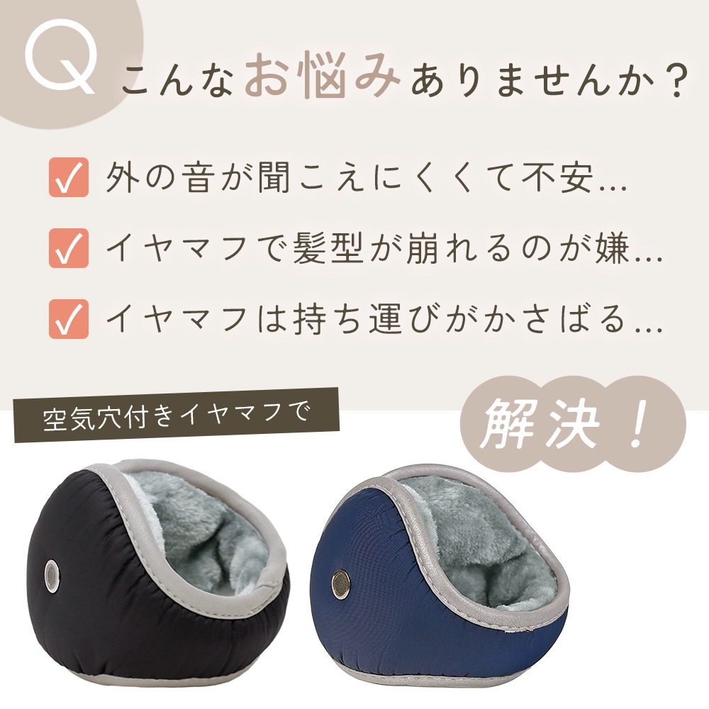 空気穴を備えた設計で、音を完全に遮断しにくく、周囲の音が聞こえやすいイヤーマフラー。