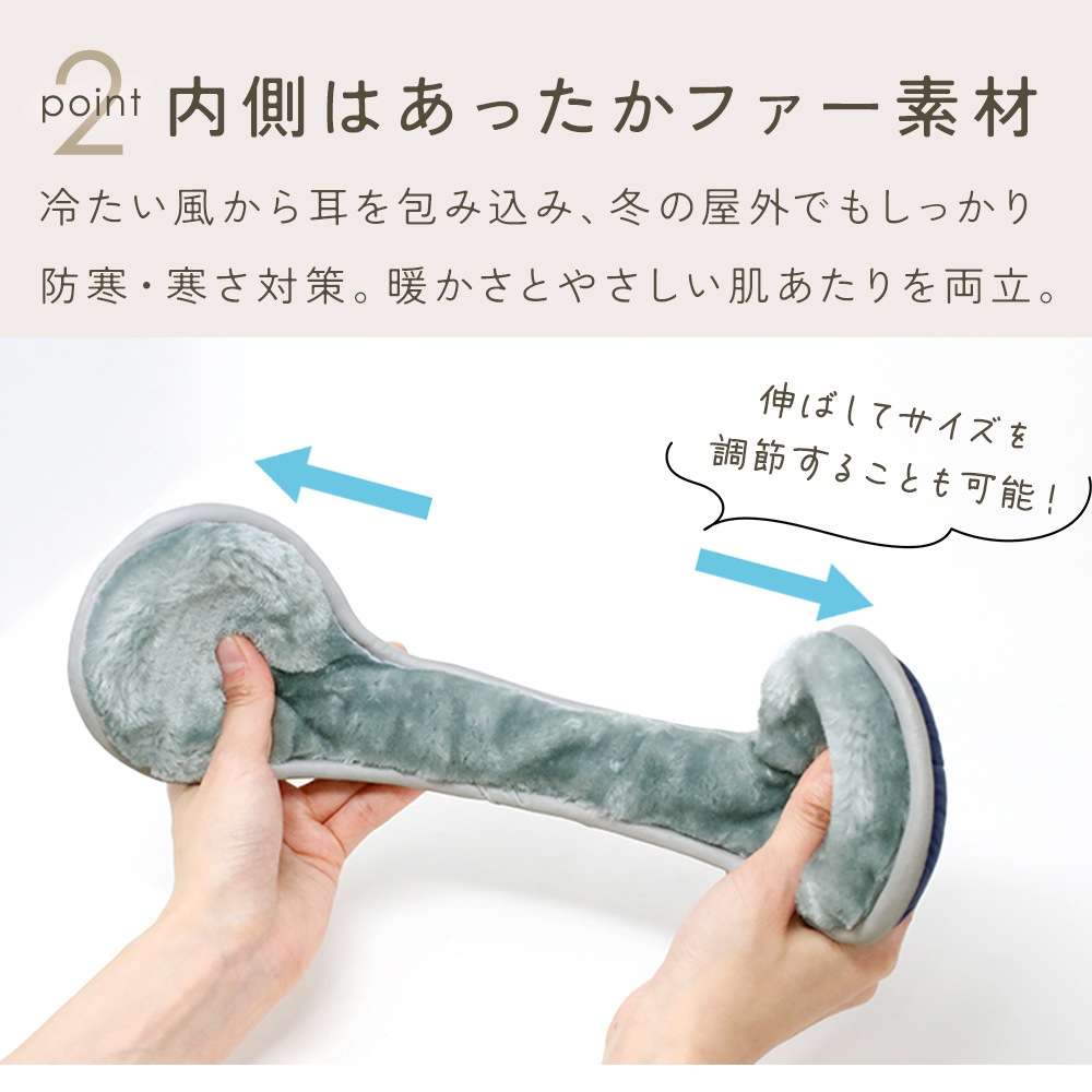 耳に触れる内側部分には、やわらかなファー素材を使用。
