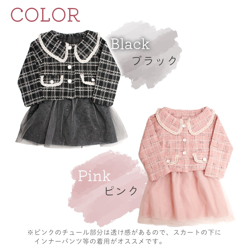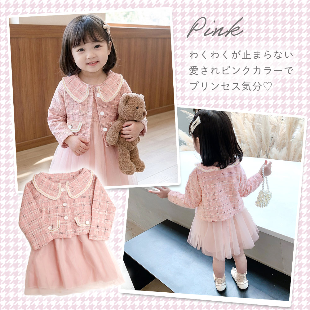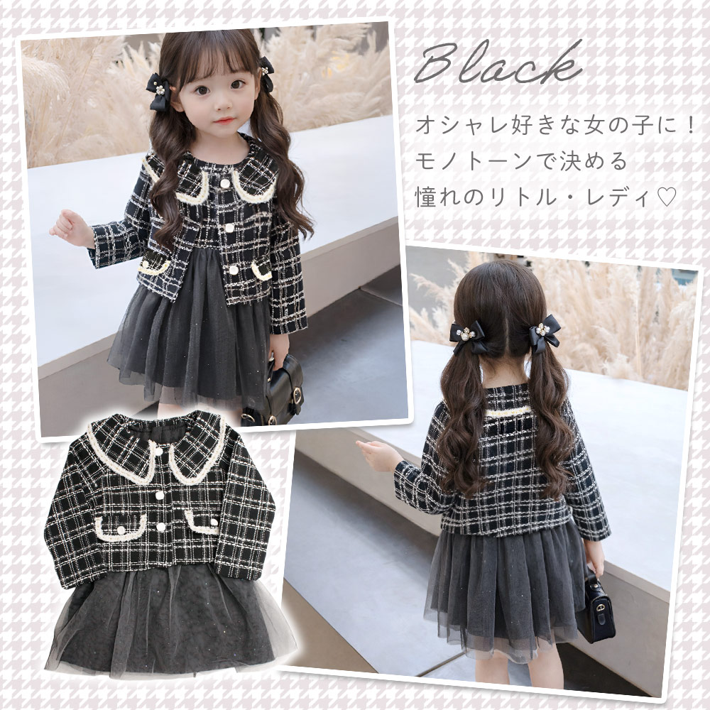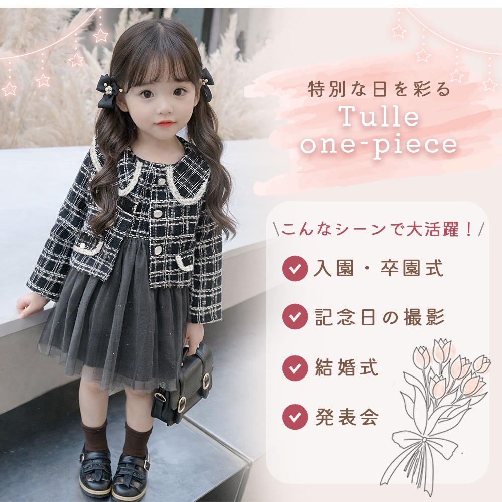 チュールドレス ボレロ付き ツイード ワンピ フォーマル 女の子 キッズ かわいい おしゃれ 長袖 チュール おめかし 記念日 撮影 発表会 お出かけ 入園式 卒園式