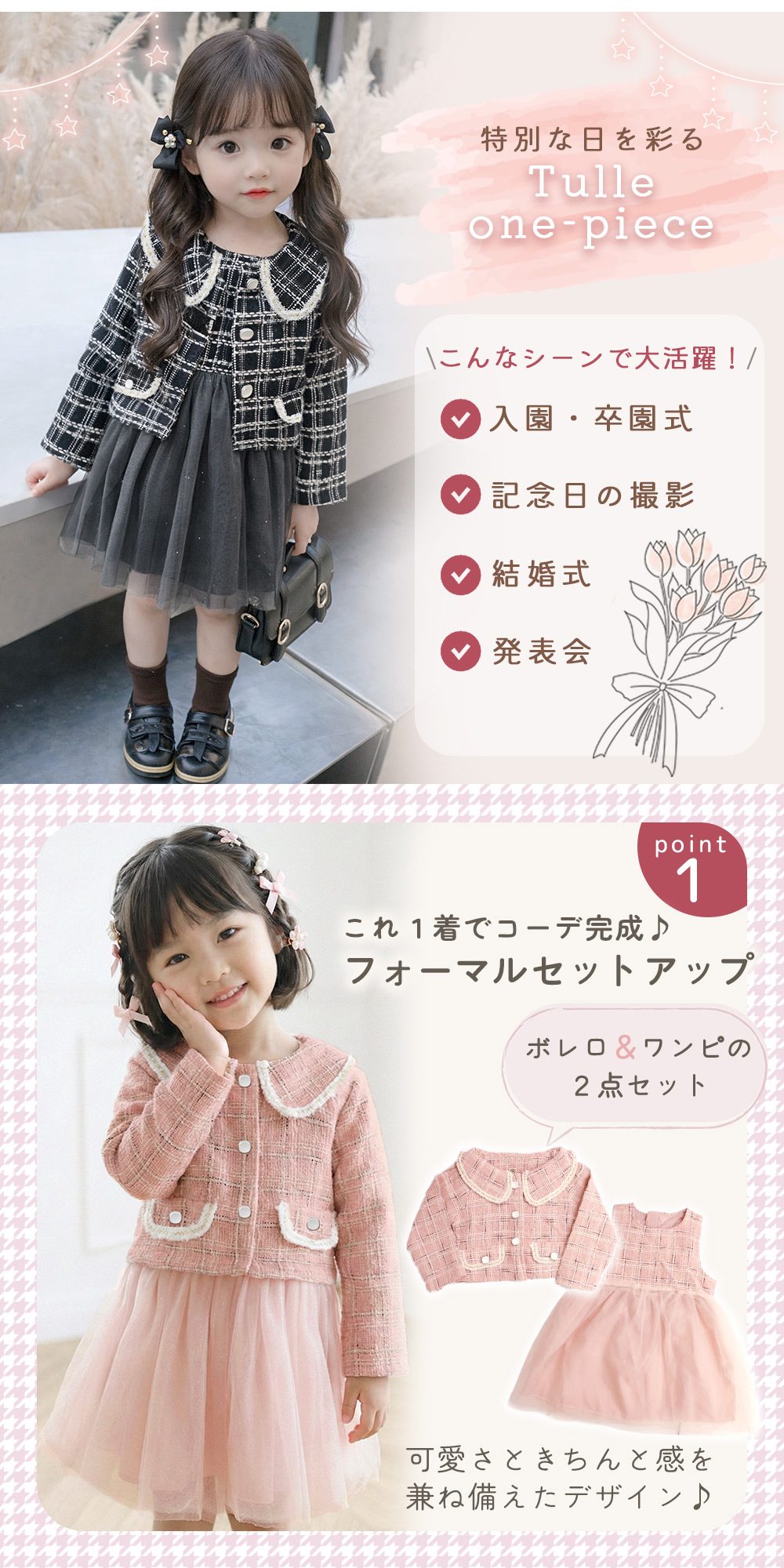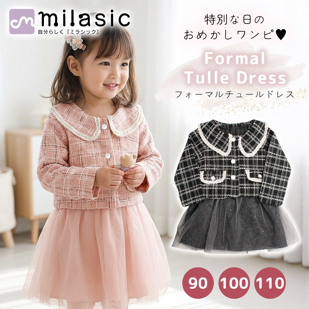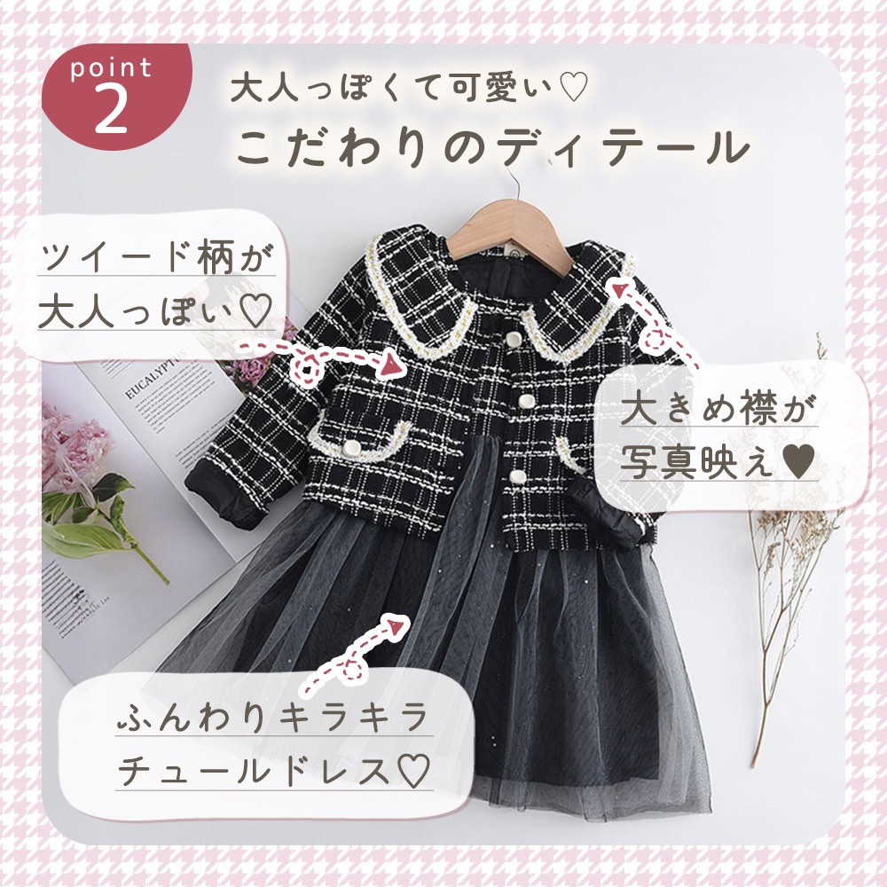 チュールドレス ボレロ付き ツイード ワンピ フォーマル 女の子 キッズ かわいい おしゃれ 長袖 チュール おめかし 記念日 撮影 発表会 お出かけ 入園式 卒園式