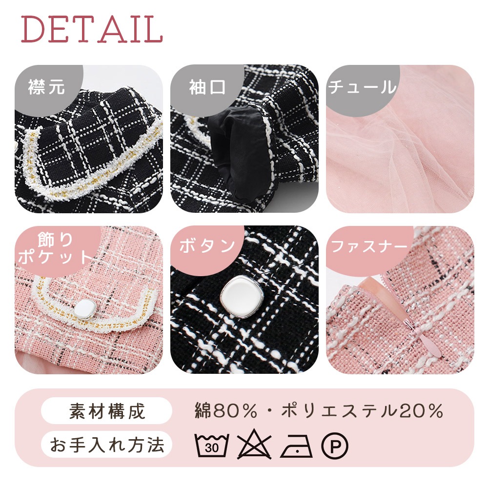 子供服は汚れやすいからこそ、お手入れのしやすさも重視。洗濯OKで、日常使いにも取り入れやすい仕様です。素材は綿とポリエステルを使用し、見た目のきちんと感と扱いやすさを両立。ギフトにも選ばれやすい、実用性のあるワンピースです。