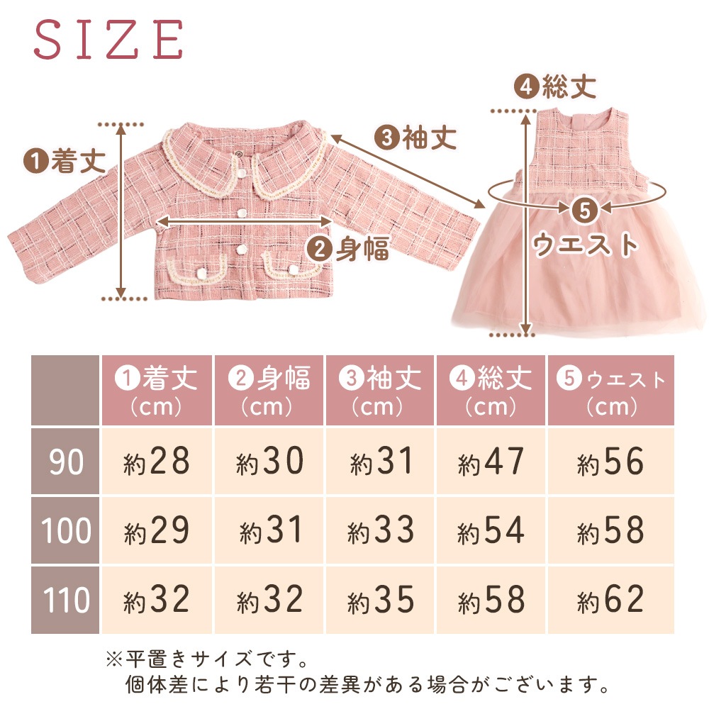 ボレロとワンピは別々でも着用できるので、手持ちのトップスやアウターと合わせて着回しが広がります。式典の日はフォーマルに、普段はワンピ単体でカジュアル寄りに。お出かけやおめかしシーンに合わせてアレンジしやすい子供服セットです。