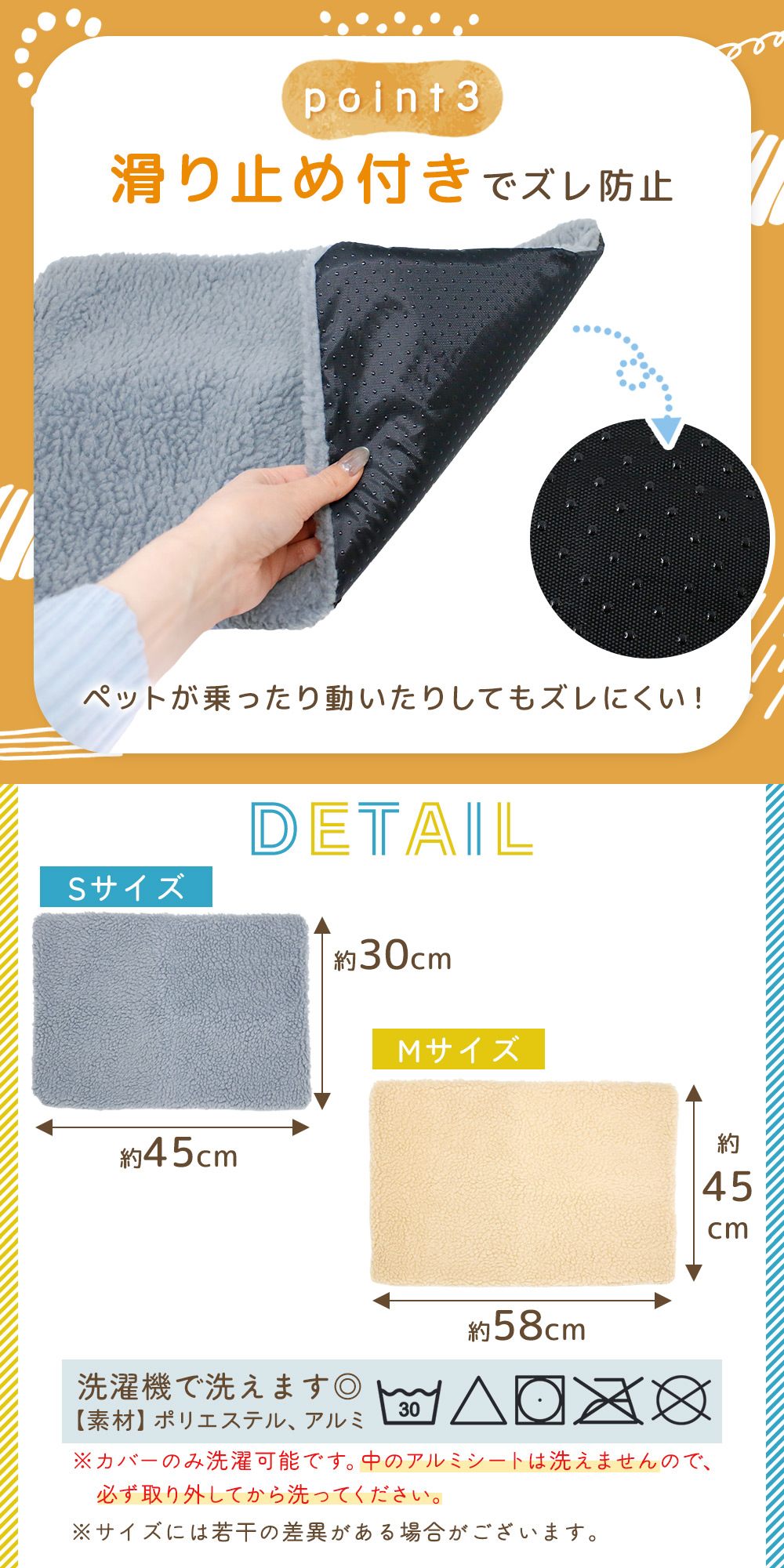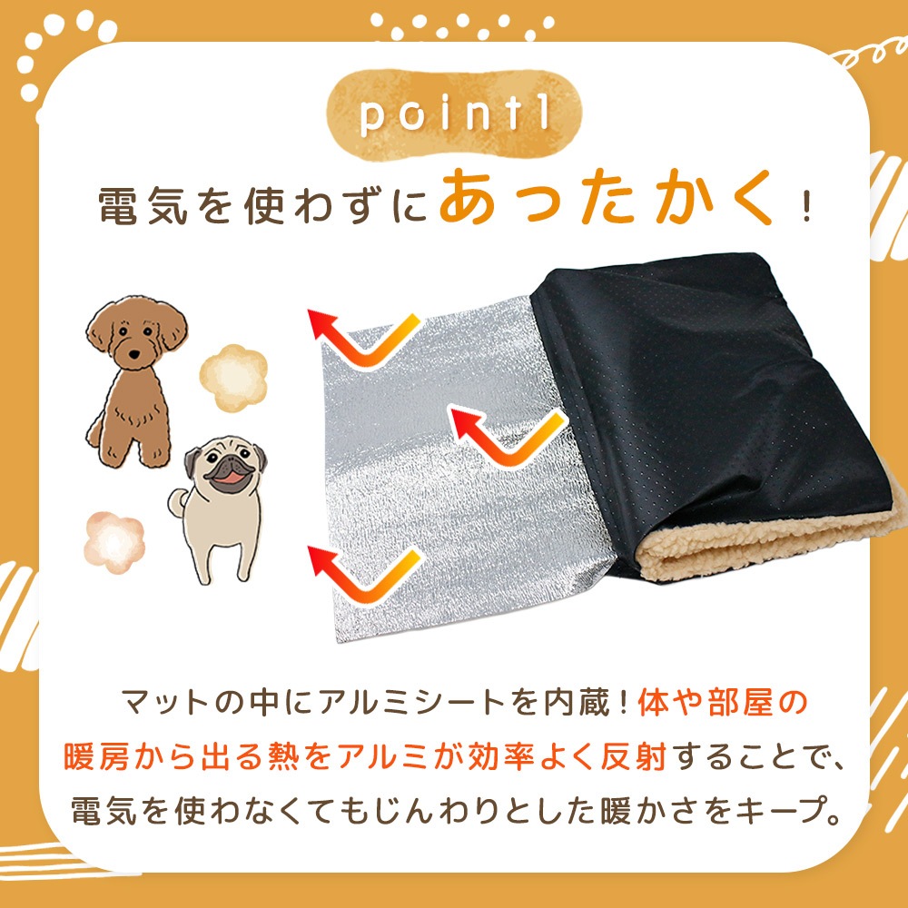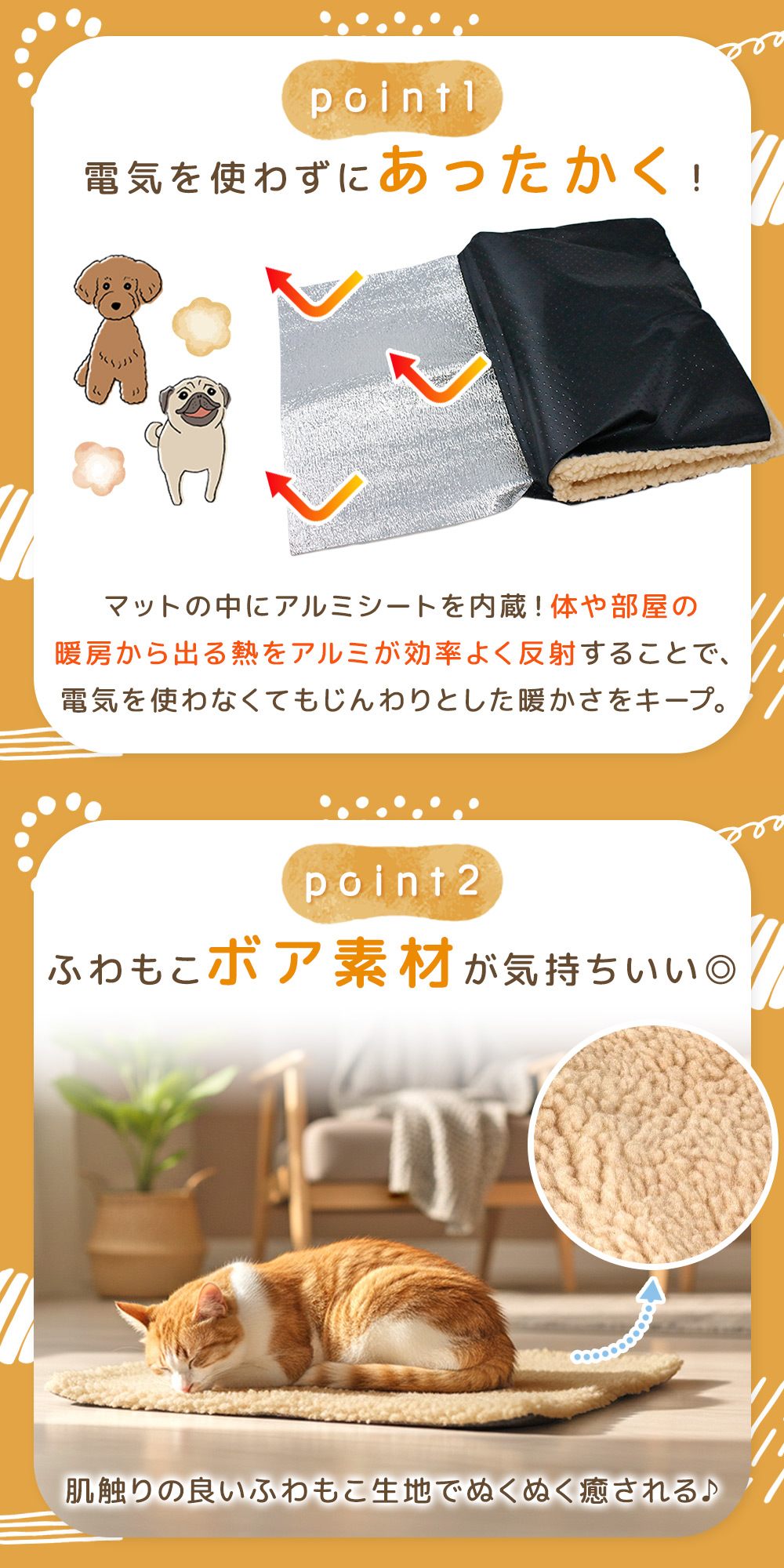 あったかマット ペット用 ボア ふんわり ぬくぬく 犬 猫 防寒 寒さ対策 電気不要 電源不要 アルミシート 蓄熱保温 滑り止め付き ズレない 洗える 丸洗い 2サイズ