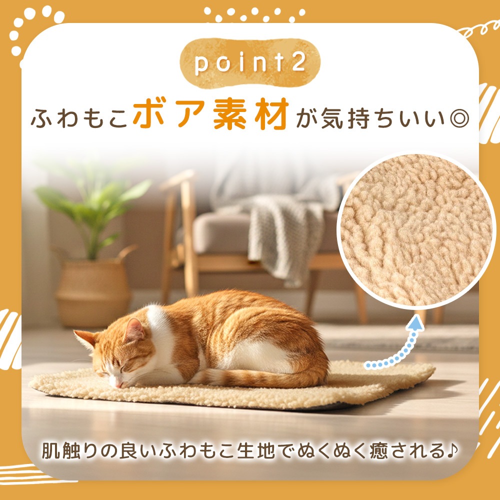 表面はふんわりやわらかいボア素材。触れたときの冷たさを感じにくく、ペットが自然と乗りたくなる心地よさ。