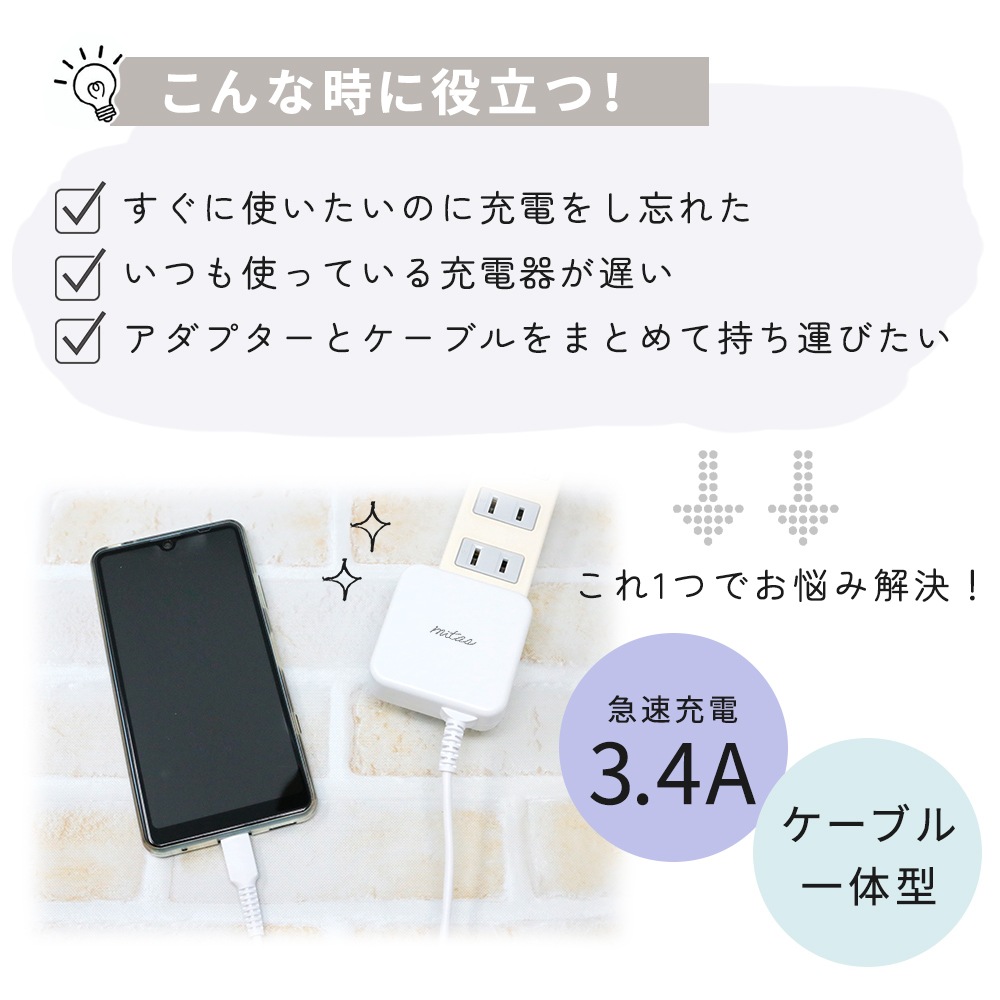 急速充電器 タイプC PD対応 20W USB Type-Aポート付き ケーブル一体型 ACアダプター Type-C 高速 くすみカラー スマートフォン スマホ 携帯電話 ゲーム機 mitas