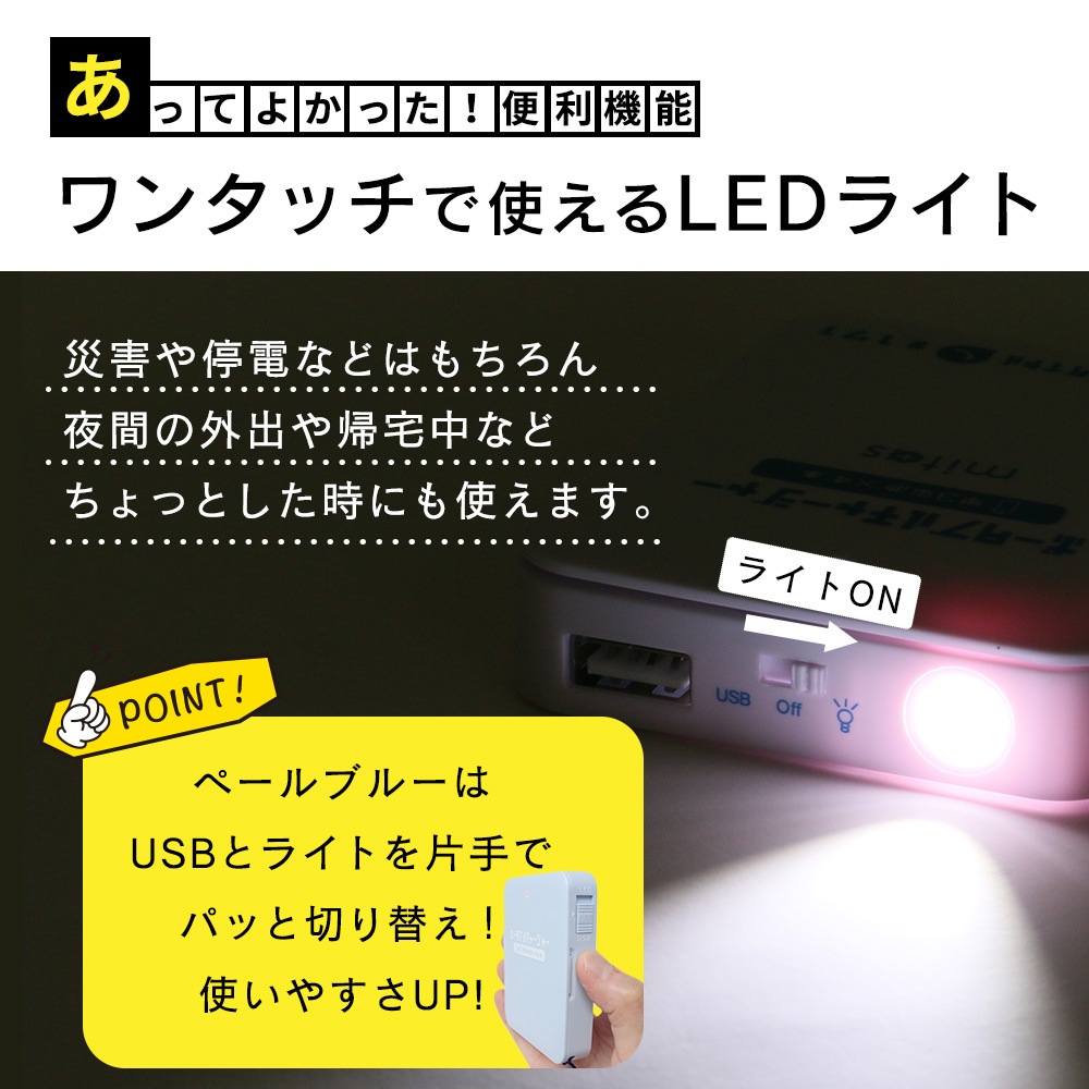 充電式のモバイルバッテリーと違い、乾電池を入れ替えるだけで使用可能。