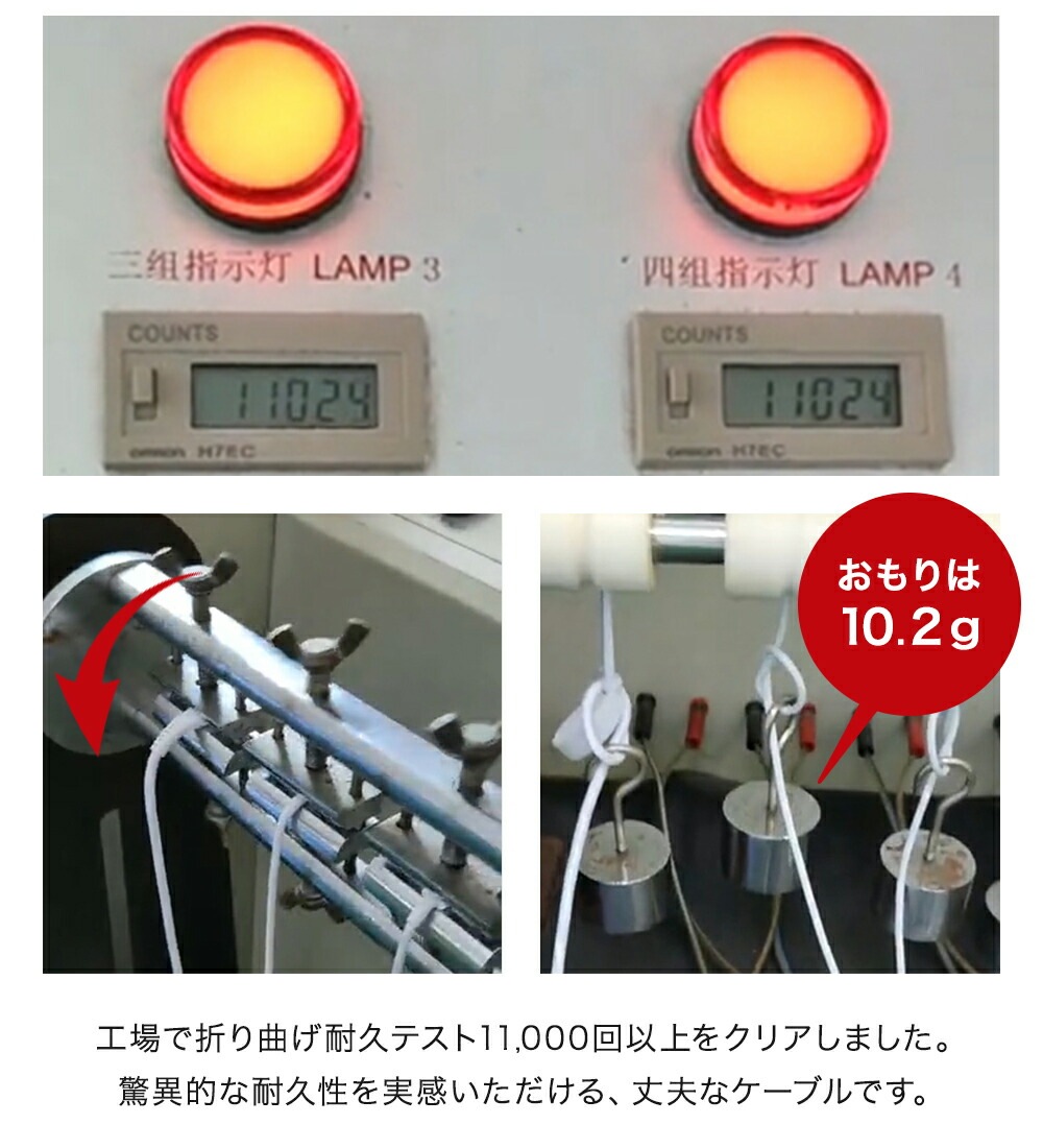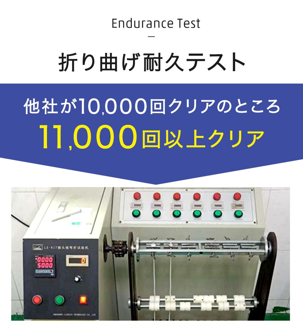 ・工場で折り曲げ耐久テスト11.000回以上をクリア