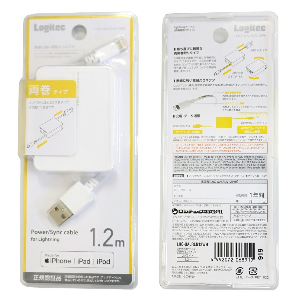 ロジテック iPhone ライトニング ケーブル 巻取り 70cm 80cm 120cm Lightning Apple認証 MFi認証 iPhone MFI認証 巻き取り 巻取 Logitec エレコム ELECOM