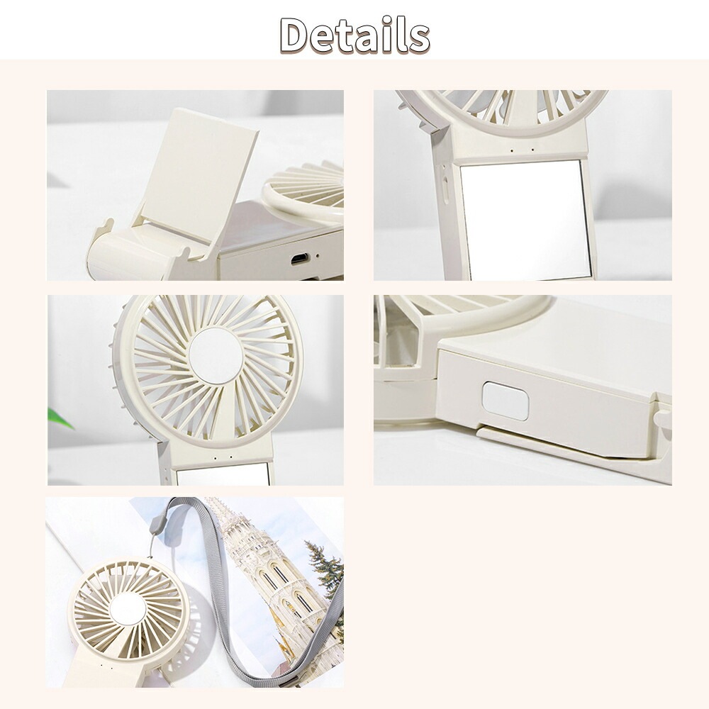 卓上/usb/ハンディ/おしゃれ/キャンプ/小型/シャープ/卓上/手持ち/ひんやり/涼しい/クール/かわいい/充電式/エコ/エコロジー/夏/真夏/汗/運動/持ち運び/お出かけ/LED/イルミネーション/野外/コンパクト/ライブ/花火/花火大会/夏祭り/野外イベント/BBQ/バーベキュー/海水浴/海/プール/ハンディーファン/ハンディファン/ファン/扇風機/スマホスタンド/ミラー付き/ミラー/鏡/鏡付き