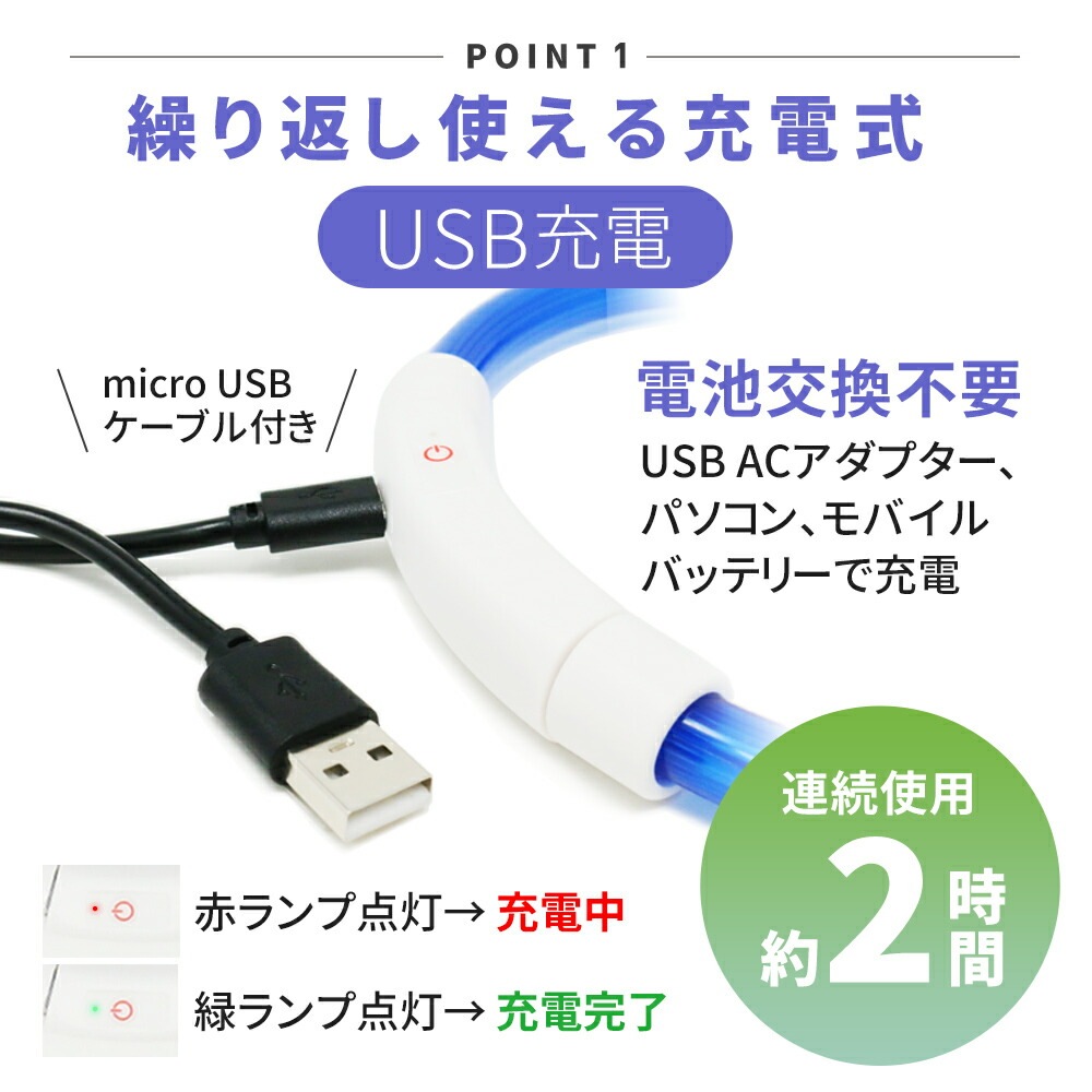 光る/首輪/光る首輪/LED/LED首輪/ペット/犬用/犬/ワンちゃん/わんこ/調節/長さ調節可能/調節可能/散歩/夜/深夜/夕方/朝/早朝/充電/充電式/公園/暗い夜道/安全/安心/明るい/点滅/点灯/事故/事故予防/充電ケーブル/充電ケーブル付き/ペットグッズ/小型犬/中型犬/大型犬/発光/発光首輪/腕/腕輪/