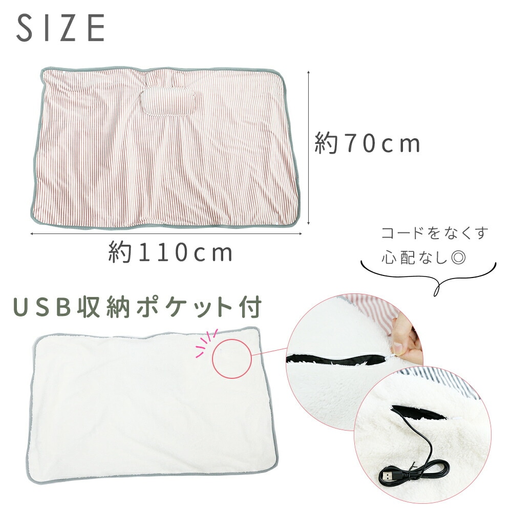 冬/寒い/冷え性/低体温/暖かい/あったか/通勤/暖房/オフィス/USB/ひざ掛け/もこもこ/車内/車載/リビング/アウトドア/スポーツ観戦/観戦/大判/コード取り外し可能/肩掛け/肩掛け可能/ブランケット/ベロア/USBブランケット/冷え/車/シガーソケット/USB/USBソケット/ウォーム/ウォームブランケット/シカ/ネコ/ウサギ/かわいい/ストライプ/ストライプ柄