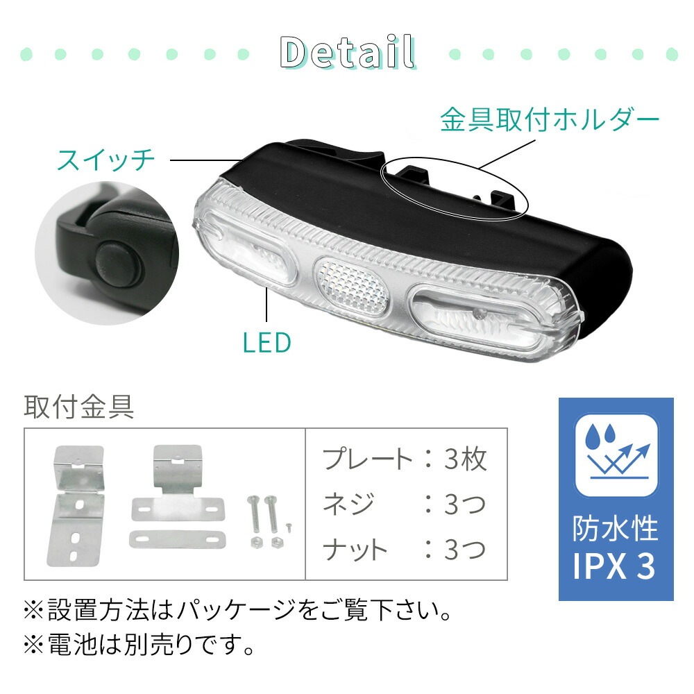 LED サイクルライト 自転車ライト IPX3 LEDライト 前かご用 前かご用サイクルライト かご下サイクルライト 乾電池 乾電池式 高輝度 点滅 点灯 白色LED2個 LEDライト LED自転車ライト 白色サイクルライト