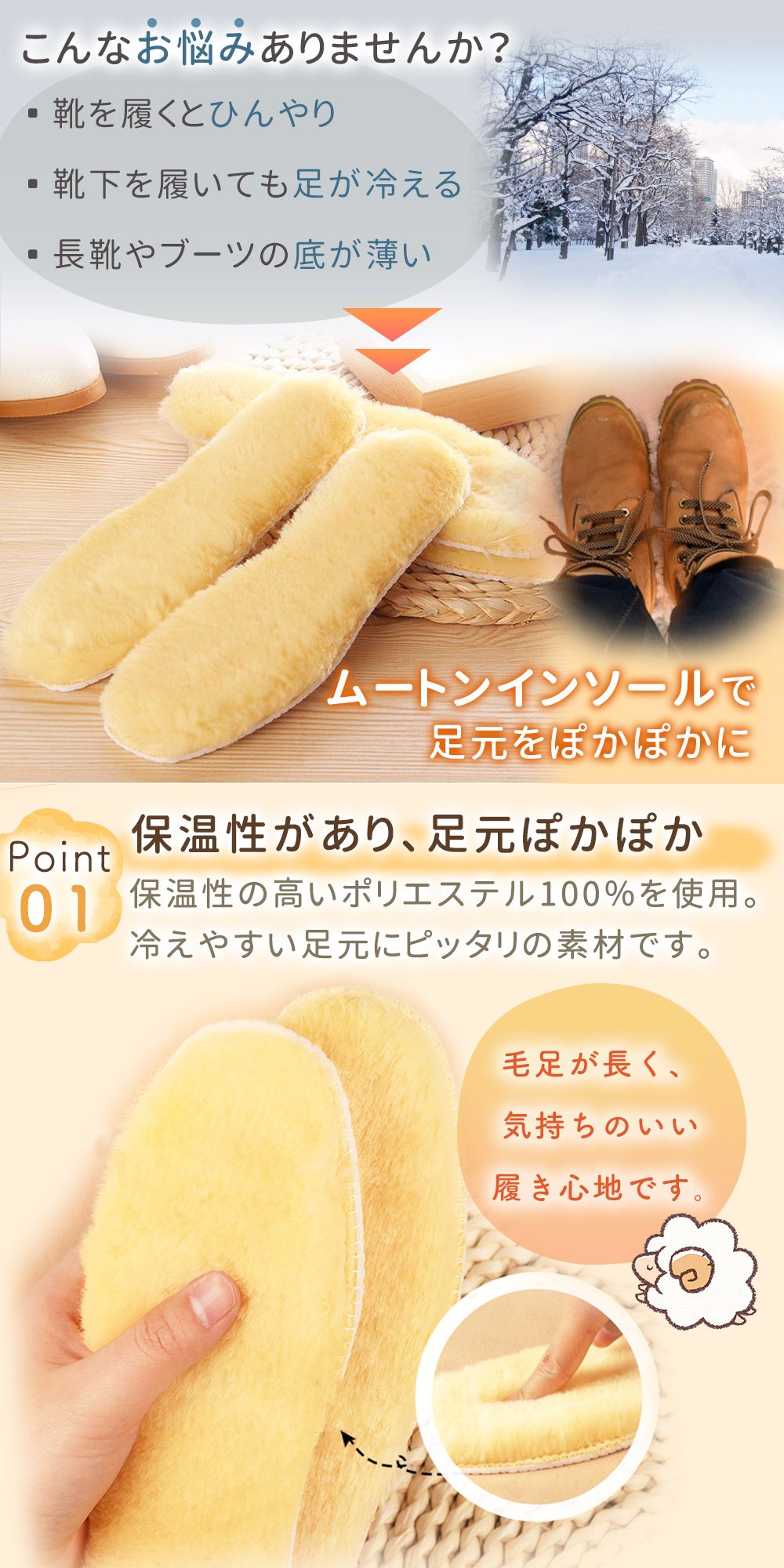 ムートン風インソール 暖かい ムートン風 ボア インソール あったか 中敷き 靴 温かい 防寒 寒さ対策 保温 男女兼用 ブーツ スニーカー 長靴 秋 冬 秋冬 春 もこもこ ふわふわ レディース メンズ キッズ 底冷え 冷え性 TN-WLIS