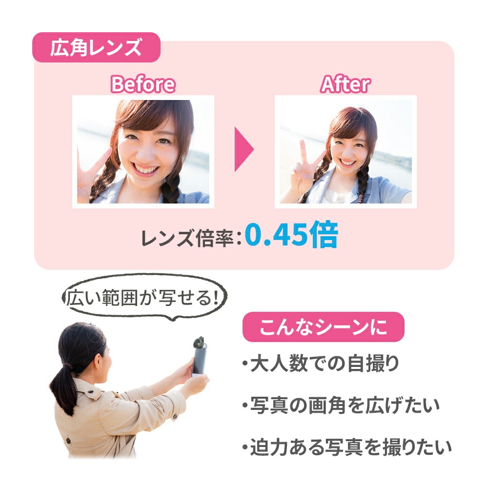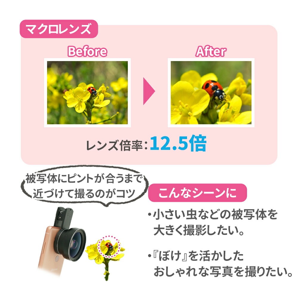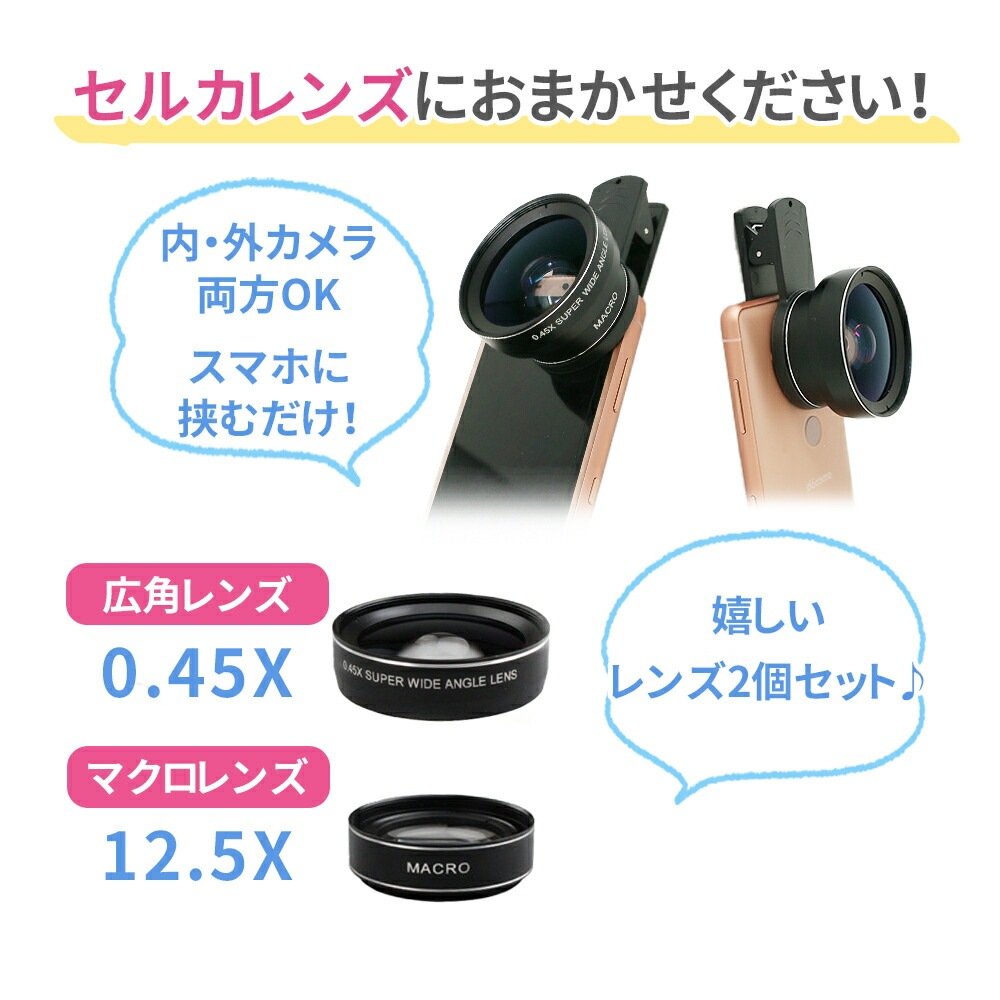 セルカレンズ/自撮りレンズ/レンズ/2点セット/自撮り/スマートフォン用レンズ/クリップ式/クリップ/広角/マクロ/広角レンズ/マクロレンズ/ワイド/ワイドレンズ/広域/スマートフォン/携帯レンズ/スマホ/アクセサリー/持ち運び/接写/iPhone/android/ipad/セルフィー/アンドロイド/アイフォン/アイパッド/じどりレンズ/セルカ/スマホアクセ/ブラック/収納袋/写真/旅行/0.45X/12.5X