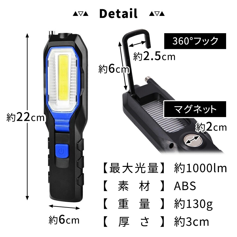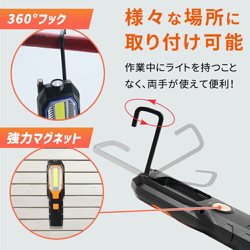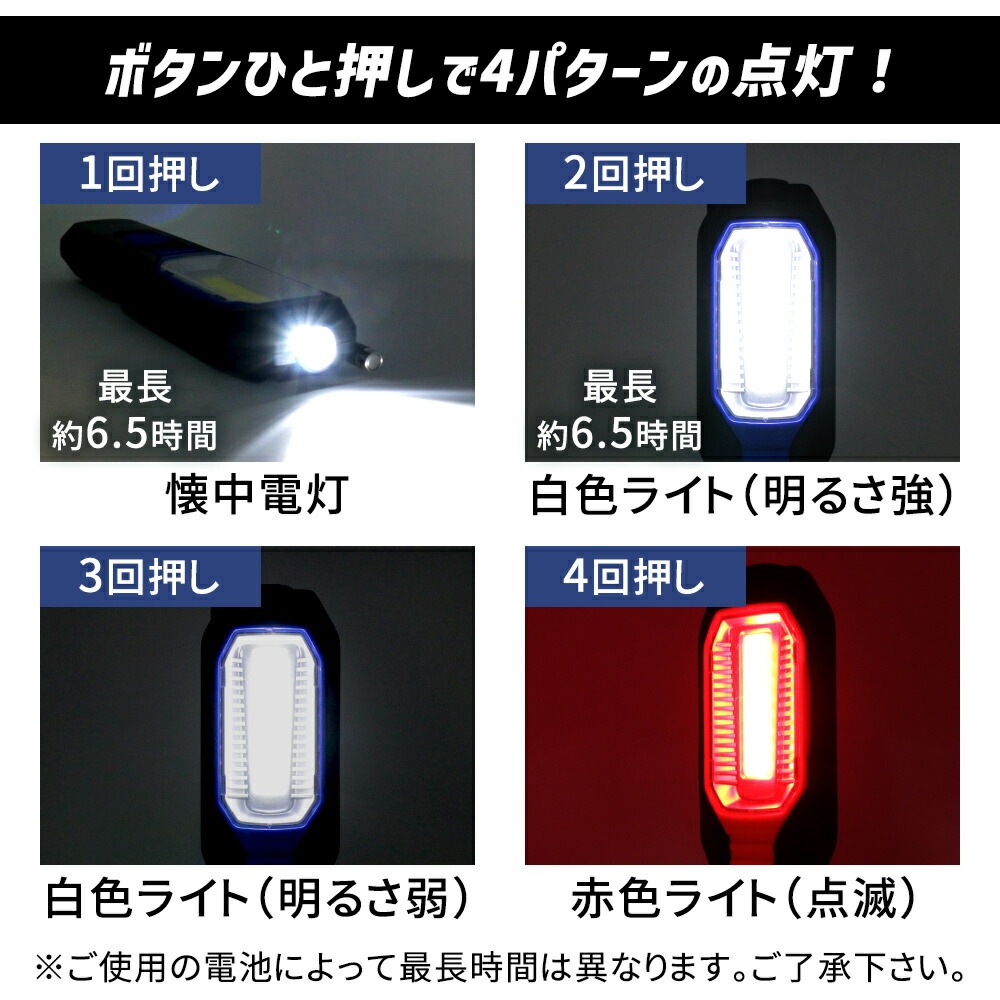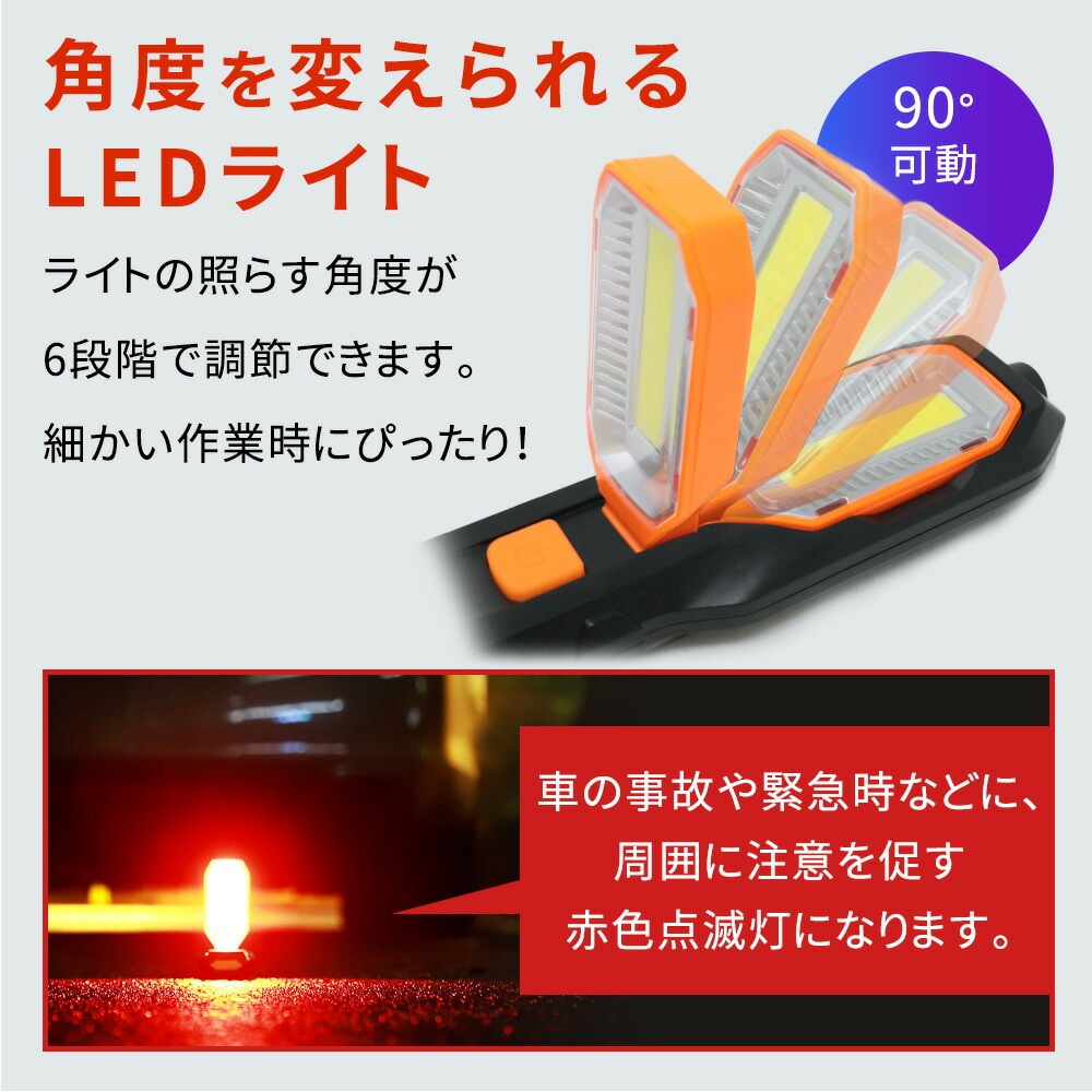 LEDライト/ワークライト/作業灯/懐中電灯/ハンディライト/スタンドライト/電池式/白/赤/点滅/角度調整/吊り下げ/フック/マグネット/磁石/モビールアンテナ/多機能/1000lm/4パターン/コンパクト/軽量/防災/震災/災害/暗所/アウトドア/キャンプ/釣り/非常時/事故/赤色点滅灯/散歩/レジャー/点検/整備/ブルー/オレンジ