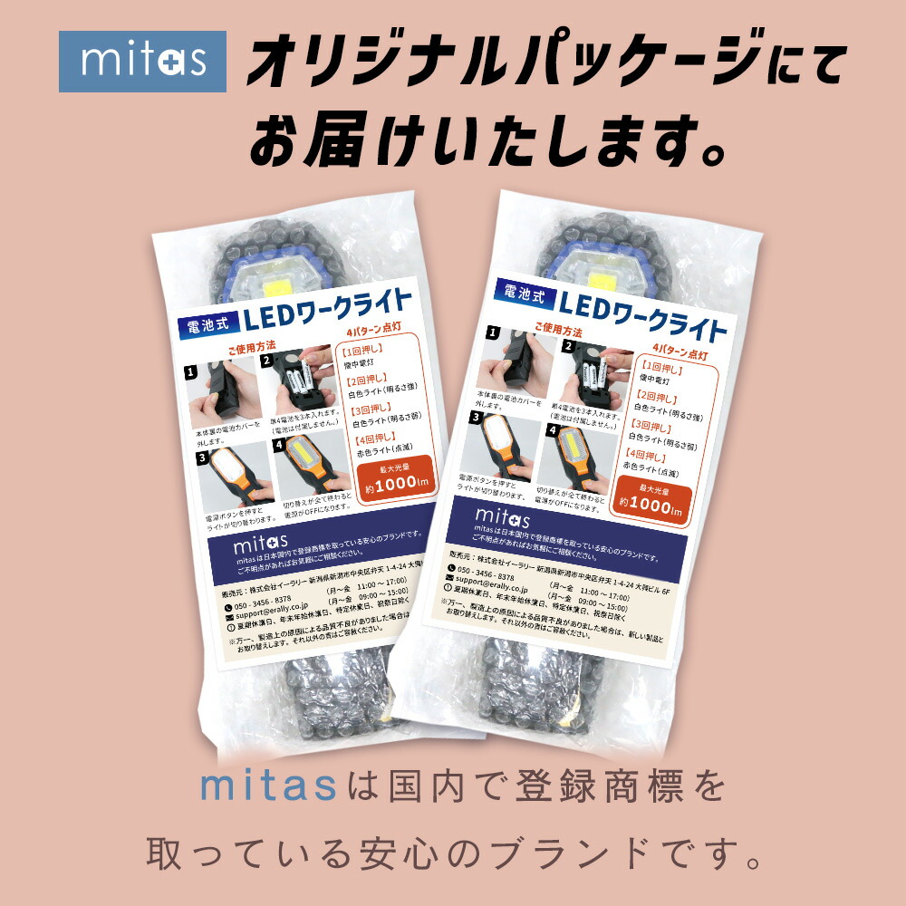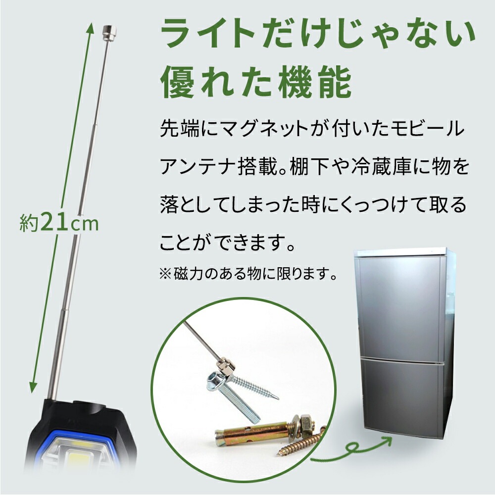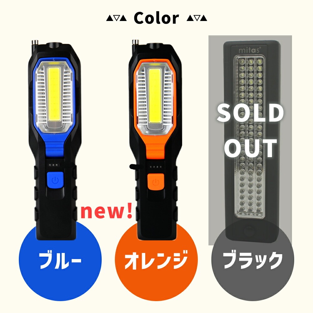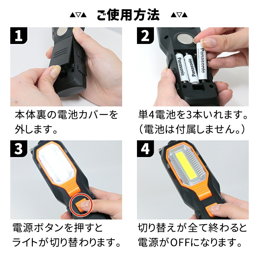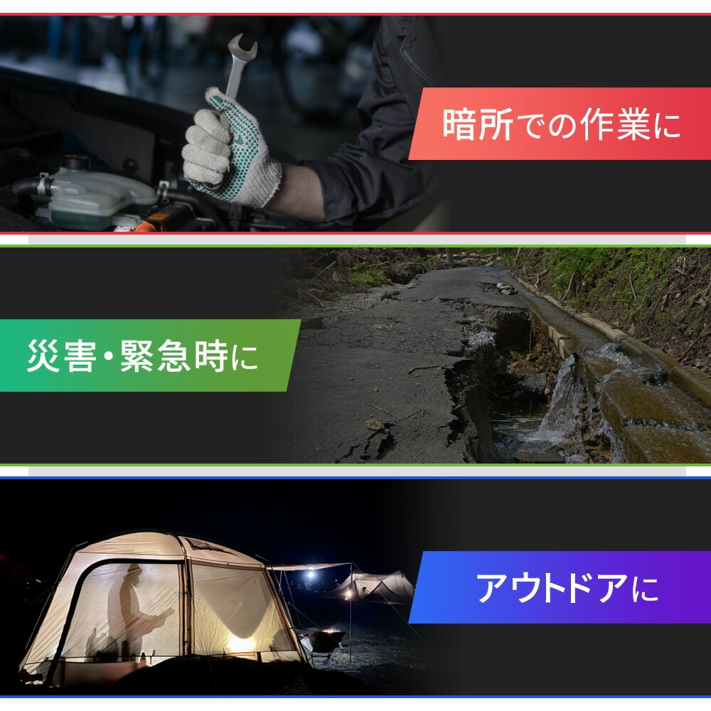 LEDライト/ワークライト/作業灯/懐中電灯/ハンディライト/スタンドライト/電池式/白/赤/点滅/角度調整/吊り下げ/フック/マグネット/磁石/モビールアンテナ/多機能/1000lm/4パターン/コンパクト/軽量/防災/震災/災害/暗所/アウトドア/キャンプ/釣り/非常時/事故/赤色点滅灯/散歩/レジャー/点検/整備/ブルー/オレンジ