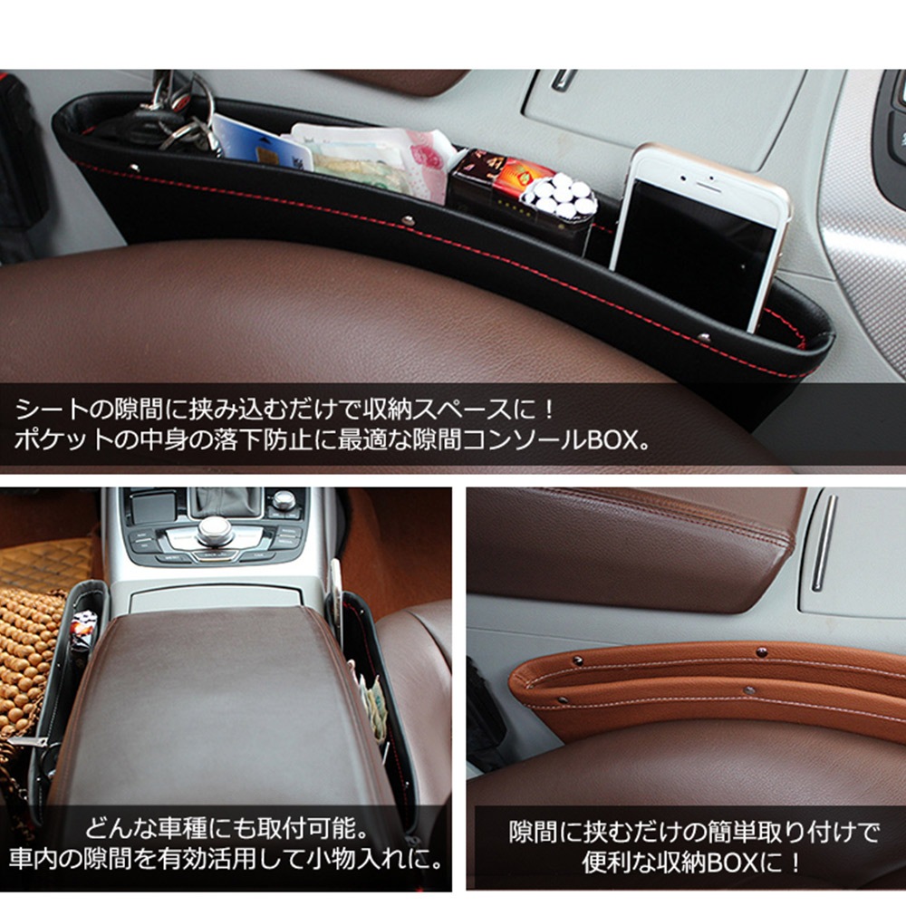 コンソール/ボックス収納/シートポケット/隙間ポケット/レザー調/BOX/車/車用/車載/隙間活用/小物/整理/アイデア/カー用品/アクセサリー/車内すきま収納/すきま/車内シートポケット/隙間収納ポケット/落下防止/隙間設置/シート隙間/コンソール間ポケット/隙間汚れ防止/