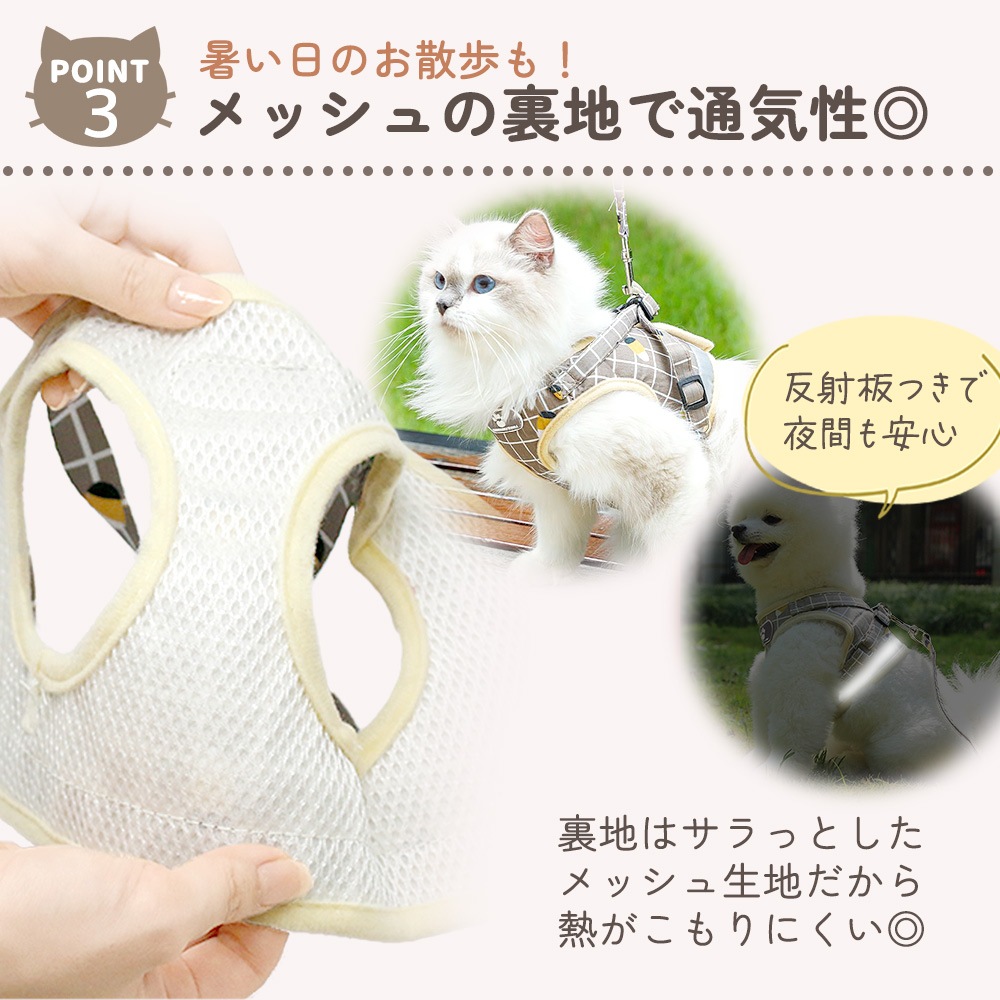 犬 猫 リード付きハーネス 散歩 ベスト型 小型件 中型犬 超小型犬 ハーネスリードセット 胴輪 散歩用品 災害時 緊急時 お出かけ 簡単着脱 リード ハーネス ドッグリード