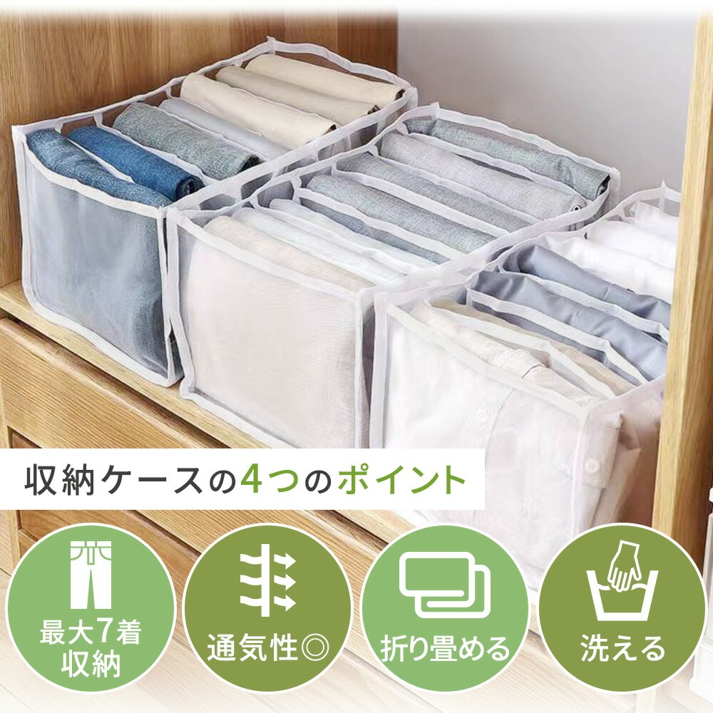 ズボン収納ケース/7ポケット/衣類収納ケース/ズボン収納ボックス/タンス収納/パンツ収納/衣類収納/ズボン収納/折りたためる/通気性/水洗い可能/クローゼット/収納ケース/チェスト収納/仕切り/ズボン/タオル/ニット/収納BOX/縦収納/ジーンズ/メンズ/レディース/バスタオル収納/Tシャツ収納/ホワイト/メッシュ素材/無地/カビ防止/スッキリ収納/最大7着収納/たっぷり収納/取り出しやすい